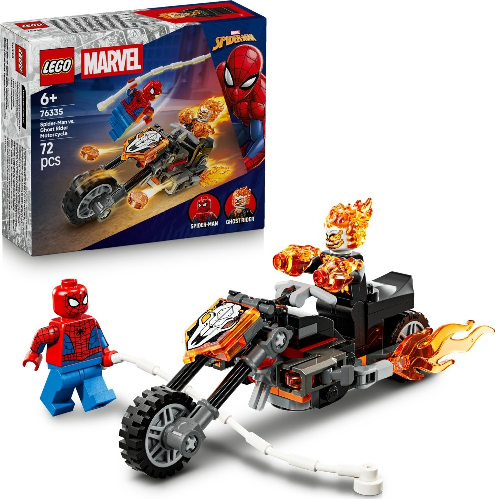 Vydejte se na superrychlou honičku se superhrdiny se stavebnicí Spider-Man vs. Ghost Rider na motorce (76335) pro holky a kluky od 6 let. Stavebnice LEGO® | Marvel s bojovou motorkou a dynamickou minifigurkou Spider-Mana a Ghost Ridera inspiruje děti k nápaditému hraní. Ghost Rider je minifigurka kostlivce s plameny šlehajícími z rukou a hlavy. Jeho ikonická motorka má 2 hořící výfuky a 2 vestavěné vystřelovače. Připevněte pavučinové lano minifigurky Spider-Mana k motorce a užijte si nekonečné možnosti hraní – ať už s motorkou, nebo bez ní! Tato stavebnice představuje skvělý dárek k narozeninám pro malé superhrdiny, stavitele LEGO a fanoušky Spider-Mana. Děti můžou stavět s oporou díky aplikaci LEGO Builder – přibližujte a otáčejte model ve 3D a sledujte postup pomocí srozumitelného digitálního návodu. Stavebnice obsahuje 72 dílků. • STAVEBNICE SPIDER-MAN NA MOTORCE – Vrhněte se do akční bitvy superhrdinů se stavebnicí LEGO® | Marvel (76335) Spider-Man vs. Ghost Rider na motorce pro holky a kluky od 6 let • 2 MINIFIGURKY LEGO® | MARVEL – Spider-Man s pavučinami a Ghost Rider, kostlivec s vlasy z plamenů, inspirují děti k nápaditému hraní • SUPERHRDINSKÁ STAVEBNICE – Tato stavebnice se Spider-Manem obsahuje řadu doplňků a nabízí nekonečné možnosti hraní rolí s minifigurkami LEGO® na motivy filmů od studia Marvel a ikonickou motorkou se 2 vestavěnými vystřelovači • VELKOLEPÁ BOJOVÁ AKCE – Děti si připomenou scénu s honičkou, během které Spider-Man vystřelí pavučinu na motorku Ghost Ridera a z rukou padoucha a výfuku motorky šlehají plameny • TIP NA DÁREK SE SPIDER-MANEM A GHOST RIDEREM – Vyrazte do akce s malými superhrdiny a milovníky motorek se stavebnicí LEGO® | Marvel, která poslouží jako skvělý dárek k narozeninám, Vánocům nebo jen tak pro radost • JEŠTĚ VÍCE ZÁBAVY – Dejte dětem volnost s obrovskou řadou aut, motorek a dalších vozidel LEGO® (prodávají se samostatně) pro kreativní hraní • SVĚT STAVEBNIC LEGO® | MARVEL – Děti si užijí fantastická dobrodružství se slavnými postavami a zapojí se do akčních scén z filmů od studia Marvel • ROZMĚRY – Motorka se skládá ze 72 dílků a měří přes 4 cm na výšku, 14 cm na délku a 5 cm na šířku