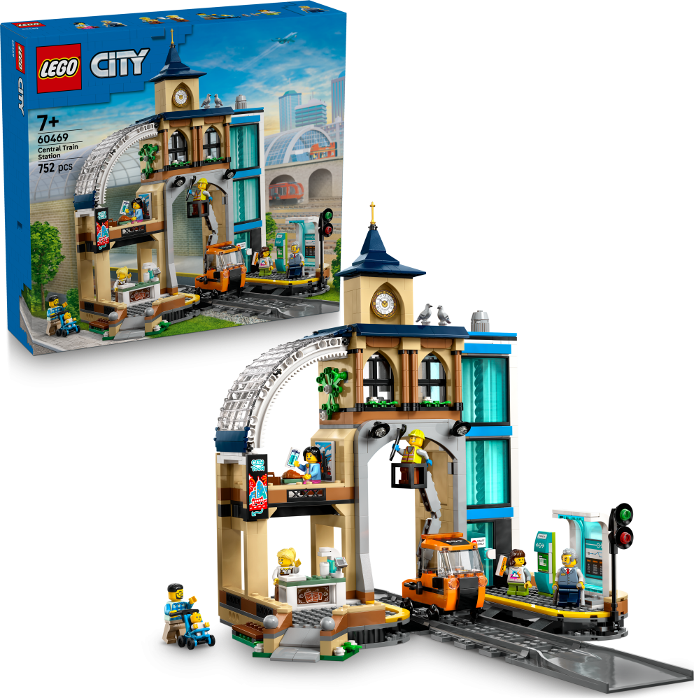 Stavebnice LEGO® City (60469) Hlavní vlakové nádraží pro děti od 7 let má 3 patra a je plná parádních funkcí pro kreativní hraní. V modelu stanice s klasickou hodinovou věží najdete útulnou kavárnu, funkční výtah, řídicí místnost, autobusovou zastávku, 2 nástupiště pro cestující, obrazovku s jízdními řády a automat na jízdenky. Nechybí údržbářský vůz vybavený pracovní plošinou, 6 minifigurek, figurka miminka a 2 figurky holubů na hraní na postavy a vyprávění příběhů. Tento model vlakového nádraží je dodáván s podrobným tištěným návodem na stavění a v aplikaci LEGO Builder najdete digitální návod. V aplikaci si děti můžou přibližovat a otáčet modely ve 3D, ukládat stavebnice a sledovat svůj postup při stavění. Ve stavebnicích z řady LEGO City na vás čekají parádní vozidla, realistické modely a zábavné postavy, které inspirují ke kreativnímu hraní. Děti můžou tuto stavebnici LEGO City kombinovat s dalšími kreativními stavebnicemi z řady LEGO City (prodávají se samostatně) a rozšířit si tak svět herních možností. Stavebnice obsahuje 752 dílků.