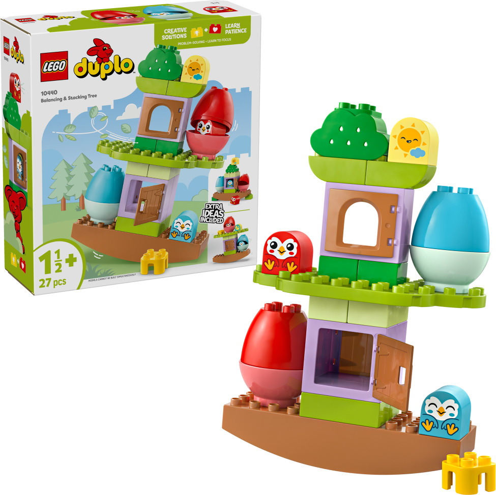 Vzdělávací hračka domku na stromě – Stavebnice LEGO® DUPLO® Můj první Houpací a skládací strom pro malé milovníky zvířátek od 18 měsíců pomáhá rozvíjet dovednosti a představivost Skládání a vyvažování – Malí stavitelé při hře s touto stavebnicí využijí schopnost řešit problémy a skládat dílky tak, aby vyvážili domeček na stromě, a aby přiřadili sovy k jejich barevným vajíčkům Figurky ptáčků pro děti – Součástí jsou 2 figurky sov, 2 vajíčka s otevíráním na dotek a domek na stromě s výklopným oknem Hodiny kreativního hraní se stavebnicemi LEGO® DUPLO® – Tato flexibilní hračka pomáhá malým dětem rozvíjet soustředění a jemnou motoriku a umožní jim také zapojit kreativitu a vytrvalost při stavění a přestavování domku na stromě Dárek pro malé děti – Tato stavebnice LEGO® DUPLO® představuje skvělý dárek k narozeninám, Vánocům nebo Velikonocům pro děti od 18 měsíců, které milují zvířátka a barevné dynamické hračky Digitální návod na stavění – Aplikace LEGO® Builder obsahuje digitální verzi návodu na stavění, jenž je součástí této stavebnice, kterou jsme pečlivě testovali, abychom zaručili bezpečný herní zážitek Hračka pro rozvíjení dovedností a představivosti – Hračky LEGO® DUPLO® pro malé děti jsou navrženy tak, aby pomáhaly rozvíjet vývojové milníky vašich ratolestí prostřednictvím zábavného a poutavého učení hrou Rozměry – Tato stavebnice se skládá z 27 dílků a dům na stromě v nejvyšší konfiguraci měří přes 28 cm na výšku, 31 cm na šířku a 9 cm do hloubky.