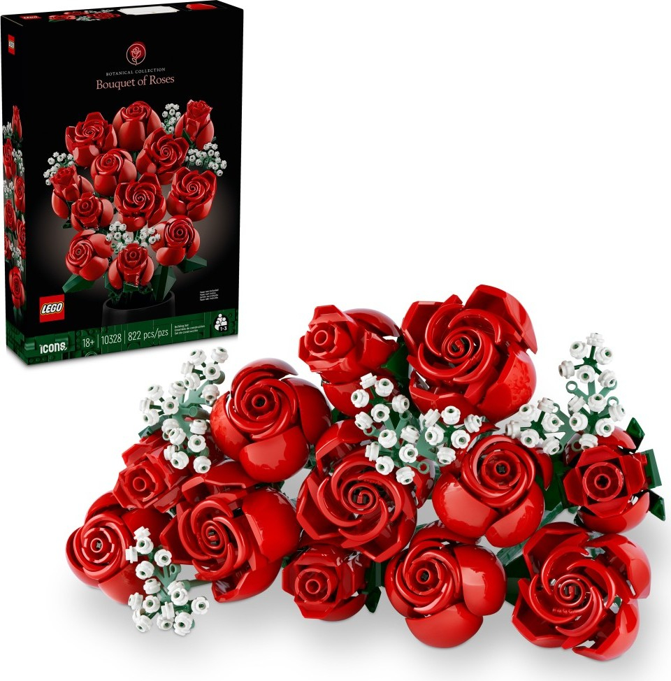 • Sestavitelná dekorační kytice – Odpočiňte si při stavění modelu Kytice růží z řady LEGO® Icons pro dospělé o samotě či s přáteli a rodinou• Co najdete v krabici – Součástí kreativní stavebnice je vše, co potřebujete k sestavení tuctu červených růží s dlouhými zelenými stonky a 4 větviček nevěstina závoje s drobnými bílými kvítky• Rozkvetlá poupata – Stavebnice LEGO® Icons Kytice růží představuje růže v různých fázích kvetení, včetně 4 plně rozkvetlých růží, 4 růží v rozkvětu a 4 poupat• Květiny, které nikdy nezvadnou – Ozdobte svůj domov nebo kancelář barevnými růžemi, jež nemusíte zalévat• Tip na dárek k Valentýnu – Stavebnice představuje krásný dárek pro dospělé fanoušky modelů LEGO®, dekorací a květin a zaručeně potěší jako dárek k narozeninám nebo k jakékoli jiné příležitosti• Stavění na vlastní pěst nebo s přáteli a rodinou – Stavebnice LEGO® Icons obsahuje 6 sáčků s kostkami a 3 návody na stavění se 3 fázemi kvetení a umožňuje tak skupinovou zábavu i tvoření o samotě• Součást botanické kolekce LEGO® – Vychutnejte si odpočinek s rozsáhlou řadou stavebnic LEGO navržených speciálně pro dospělé• Rozměry – Stavebnice má celkem 822 dílků a nejvyšší růže měří přes 31 cm na délku