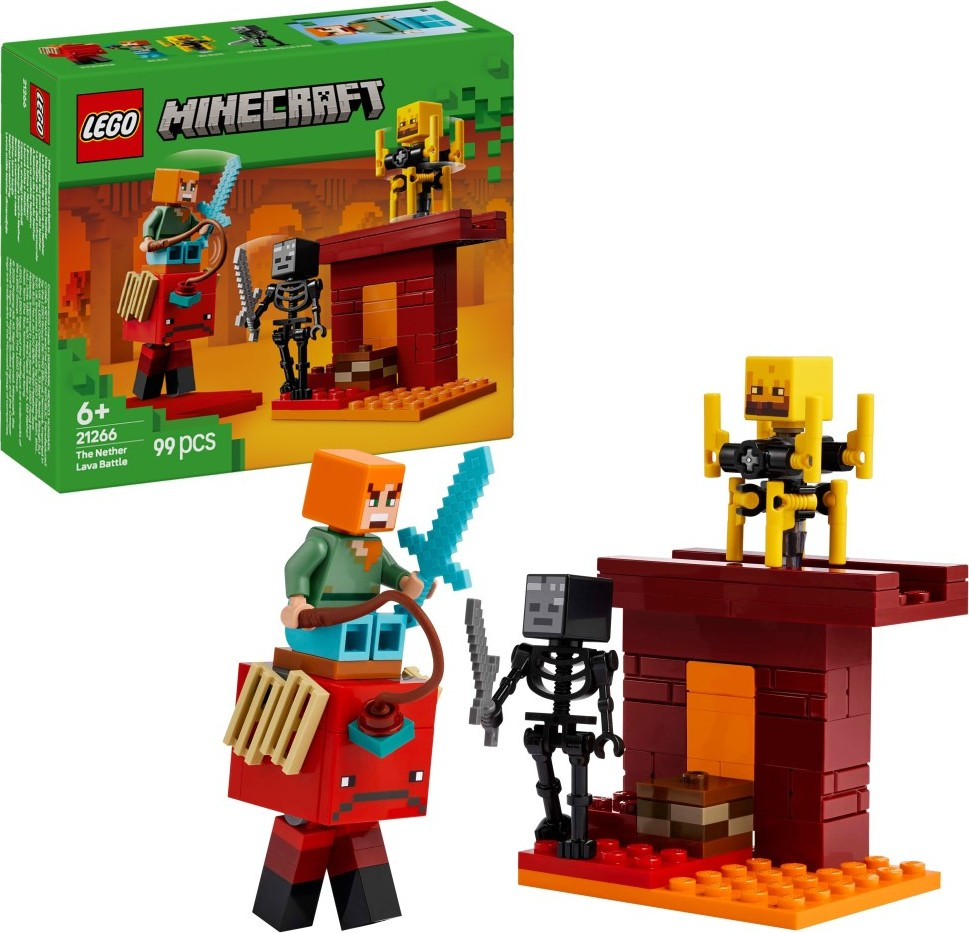 Kreativní dárek pro děti – Lávová bitva v Netheru je malá stavebnice LEGO® Minecraft®, se kterou si milovníci oblíbené videohry od 6 let užijí hodiny zábavy při stavění a hraní Stavebnice Minecraft® s řadou aktivit – Obsahuje sestavitelnou část mostu pevnosti v Netheru, figurku LEGO® Minecraft Alex, wither kostlivce, blaze a chodce se zbraněmi a doplňky LEGO® Minecraft® Akce v pevnosti v Netheru – Hráči použijí své dovednosti k posbírání starověkých trosek, útěku před lávou, boji s moby a jízdě na figurce z Minecraftu do bezpečí Doplňky k herní stavebnici – Kostlivec se ohání kamenným mečem, vířící blaze roztáčí své tyče, chodec má pohyblivé nohy a sedlo a Alex má diamantový meč z videohry Zábavný dárek pro hráče Minecraftu – Tato kreativní stavebnice pro děti inspirovaná videohrou je skvělým zážitkem pro kluky a holky, kteří milují malé stavebnice plné aktivit Ještě více zábavy – Prohlédněte si celou řadu kreativních hraček LEGO® Minecraft® (prodávají se samostatně) inspirovaných videohrami Minecraft® v reálném světě – Stavebnice LEGO® Minecraft dávají dětem možnost novým kreativním způsobem prožívat hru a postavit si z kostek LEGO známé moby, lokace a předměty 99 dílků – Hotový model měří přes 6 cm na výšku, 6 cm na šířku a 5 cm do hloubky.