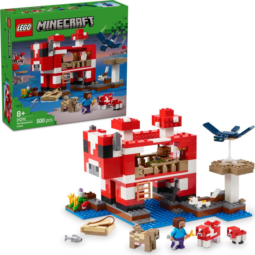 Stavebnice LEGO® Minecraft® (21270) Krávomůrčí domek zaručeně potěší hráče Minecraftu a malé milovníky stavění domů, péče o zvířata a odrážení občasných útoků ze vzduchu! Tato poutavá stavebnice představuje skvělý dárek ze světa Minecraft pro holky a kluky od 8 let. Tato stavebnice LEGO Minecraft se nachází na houbovém ostrově a obsahuje oblíbenou postavu Steva, červenou krávomůrku, malou červenou krávomůrku, hnědou krávomůrku, tříbarevnou kočku a nepřátelský létající přízrak. Stavebnice je plná prvky, které se objevují ve hře, včetně malé farmy s pšenicí, houbami a rostliny rostoucí vedle kompostéru. Mezi doplňky najdete rybářský prut, tresku, motyku, netheritový meč, misku, loďku s vesly, truhlu, pec, pracovní stůl, knihovnu, chléb a postel. S aplikací LEGO Builder si děti užijí ještě větší porci zábavy. Umožní jim na jejich zařízení přibližovat a otáčet modely ve 3D. • Stavebnice LEGO® Minecraft® pro děti plná funkcí a postav • Mezi figurkami ze světa Minecraft® najdete Stevea, krávomůrky, tříbarevnou kočku a přízrak • Děti si postaví domeček ve tvaru krávomůrky s malou farmou, rybářskou loďkou a pokladem • Mezi herní doplňky LEGO® Minecraft® patří netheritový meč a pracovní stůl • Stavebnice LEGO® Minecraft® Krávomůrčí domek je skvělý dárek k narozeninám nebo jiné příležitosti • Děti můžou přibližovat a otáčet stavebnice ve 3D pomocí intuitivní aplikace LEGO® Builder • Stavebnice LEGO® Minecraft® dětem přinášejí nový způsob, jak si tvořivě vychutnat videohry • Stavebnice se skládá z 500 dílků a měří přes 16 cm na výšku a 19 cm na šířku • •