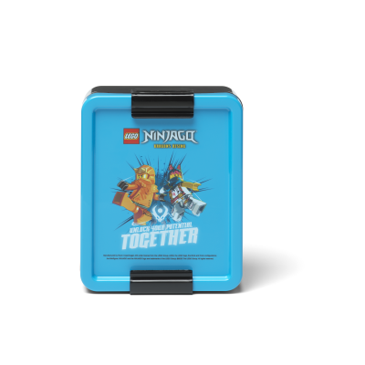 Nový LEGO box na svačinu s motivem LEGO Ninjago. Rozměry boxu s víkem: 170 × 135 × 69 mm. Materiál: PP/PE, neobsahuje bisfenol A (BPA) ani ftaláty. Bez použití PVC.