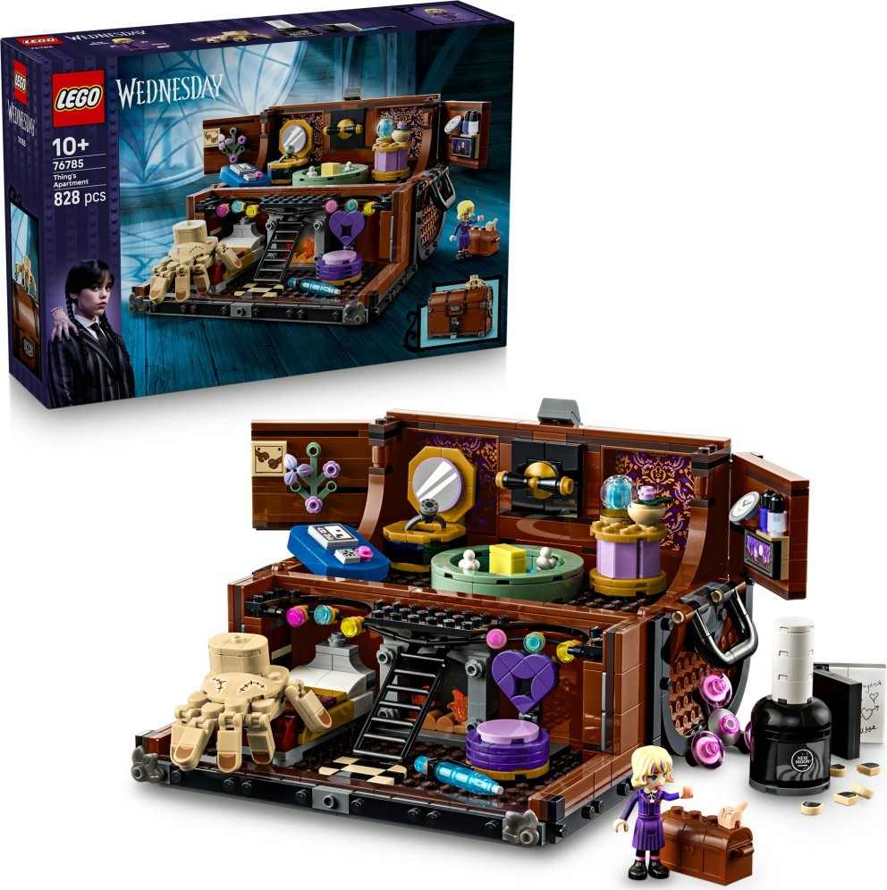 • Nadchněte fanoušky seriálu Wednesday stavebnicí plnou detailů • Obsahuje model kufru z kostek s hracími plochami a spoustou doplňků • Stavebnice obsahuje pohyblivou figurku Věci a minipanenku Enid Sinclairové • Jedinečný výstavní kousek plný kreativních funkcí, které inspirují k hraní • Dárek k narozeninám nebo Halloweenu pro děti a milovníky seriálu, Věci nebo Enid • Stáhněte si aplikaci LEGO® Builder s interaktivními 3D návody na stavění • Stavebnice LEGO® Wednesday povzbuzují fanoušky k rozvoji kreativity a vyprávění příběhů • Stavebnice se skládá z 828 dílků a zavřený model bytu v podobě truhly měří přes 23 cm na šířku.