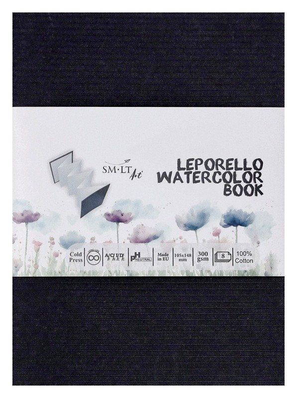 Leporelo z přírodně bílého akvarelového papíru ze 100% bavlny. Formát 105x148, obsahuje 8 listů, gramáž 300 g/m2. Povrchová textura Cold Press má vynikající schopnost zvedat barvy. Tento papír je oceňován profesionálními i amatérskými tvůrci a nabízí dobrou kvalitu za přijatelnou cenu. Jedná se o papír s dlouhou životností, bez kyselin a s neutrálním pH. S tvrdými kartonovými deskami.