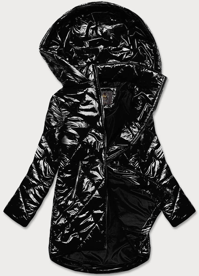 Lesklá černá prošívaná dámská bunda (LD7259BIG) odstíny černé 48