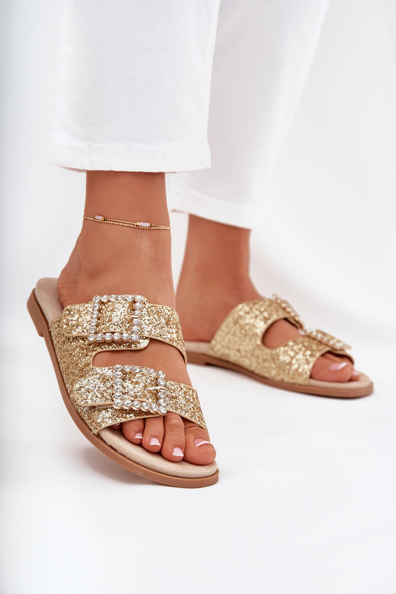 Kožené Sandály Na Plochém Podpatku S Ozdobou Laura Messi 2865 Zlaté 39