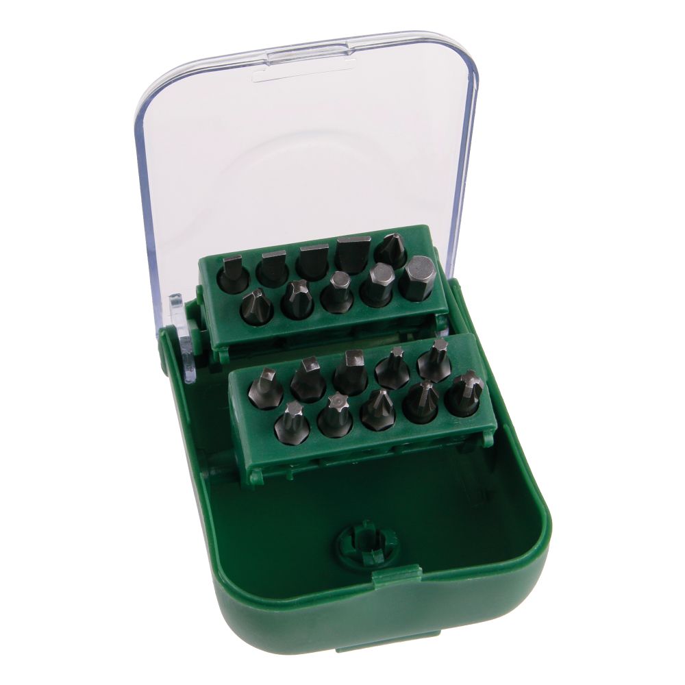 Praktická sada kvalitních šroubovacích hrotů v plastové krabičce. Bity jsou vyrobeny z velmi kvalitního materiálu. Plastová krabička je opatřena klipem pro zavěšení na opasek. Rozměry bitů: PH ( PHILIPS )1 - 2 - 3PZ ( POZIDRIVE ):1 - 2 - 3S ( plochý ):4 - 5 - 6 - 7 mmH ( imbus ):4 - 5 - 6T ( torx ):10 - 15 - 20 - 25SQ ( čtverec ):1 - 2 - 3