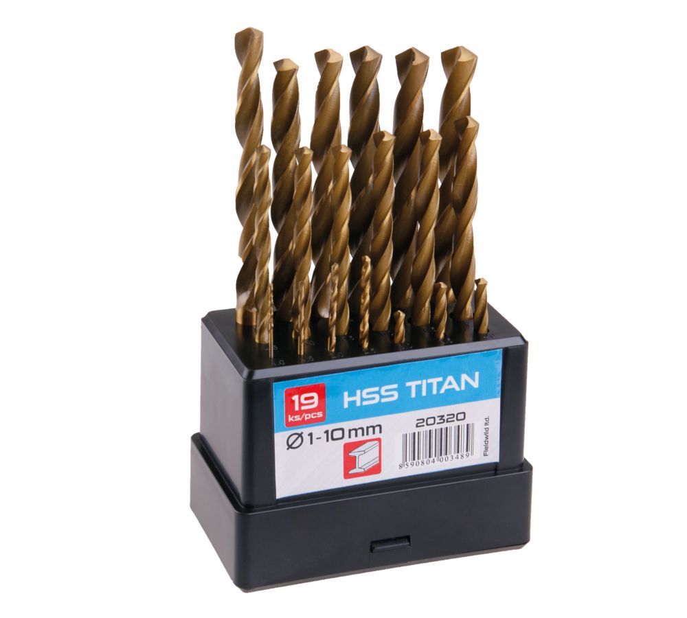 Sada vrtáků do kovu vyrobených z rychlořezné oceli HSS s povrchovou titanovou úpravou. Vrtáky z HSS oceli lze použít pro vrtání plechu, mosazi, uhlíkové oceli, litiny, ocelových a hliníkových slitin, ale také dřeva a plastů. Vrtáky jsou mají přesně vyrobenou šroubovici pro kvalitní výkon, přesný a dobře vybroušený úhel špičky vrtáku. Sada je dodávána v praktickém plastovém boxu, který usnadňuje manipulaci a skladování. Každý vrták má své označené místo a odpadá tak zdlouhavé hledání potřebného rozměru. Vrtáky odpovídají normě DIN 338. Počet vrtáků v sadě:19Průměry vrtáků:1,0 až 10,0 mmOdstupňování průměrů:0,5 mmUpínací stopka:válcováMateriál vrtáků:HSS TITANNorma:DIN 338