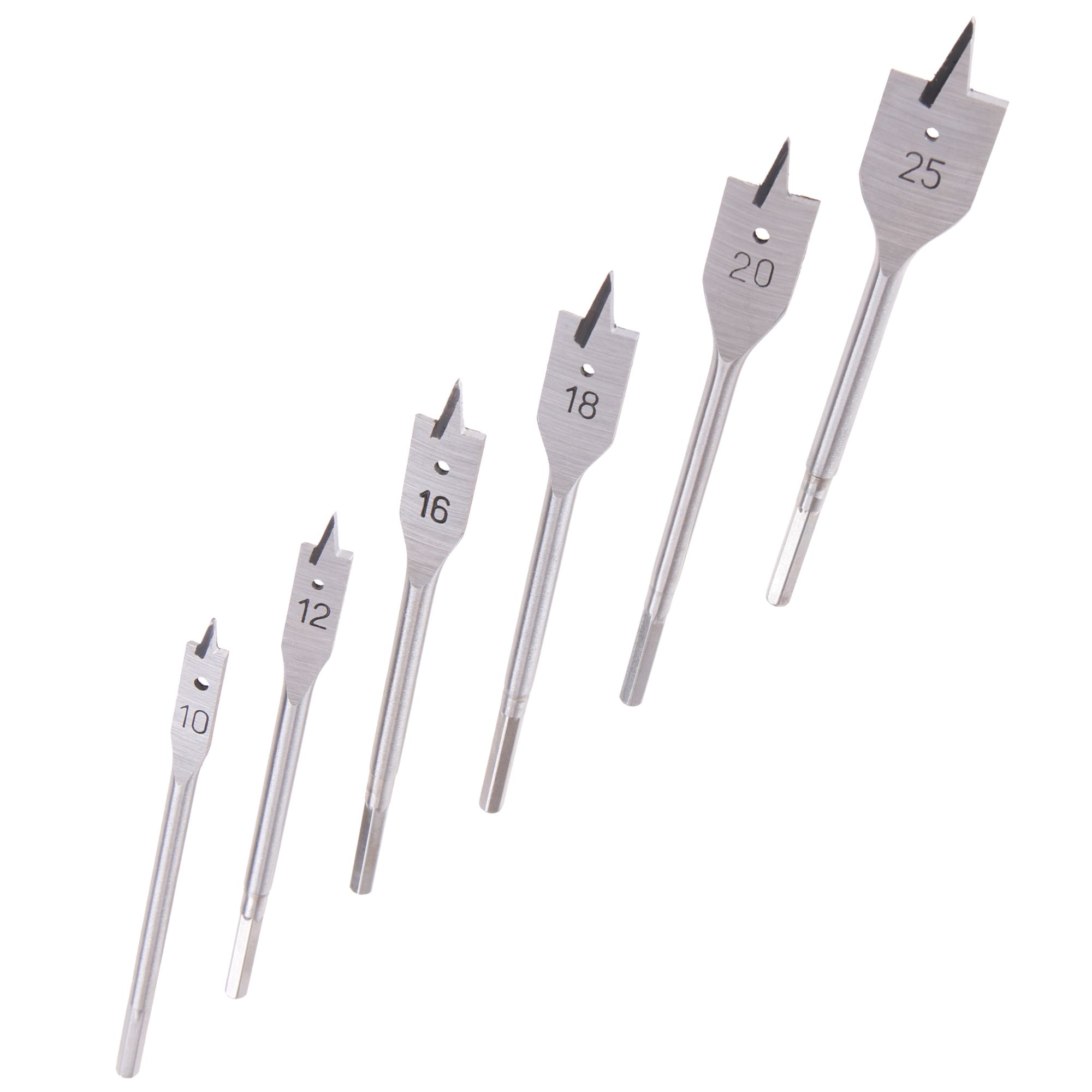 Sada kopinatých - plochých vrtáků v cenově výhodném provedení pro vrtání otvorů do měkkého dřeva. Sada je balena v PVC pouzdře. Průměry: 10, 12, 16, 18, 20 ,25 mm
