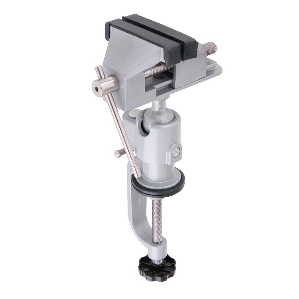 Svěrák modelářský ALU. Praktický hliníkový svěrák s kloubem pro maximální využití. Tento svěrák lze připevnit na kteroukoli pevnou podložku a díky kloubu naklápět nebo otáčet do požadované polohy. Čelisti jsou opatřeny gumovou gráničkou. Šířka čelistí:80 mmMax. rozevření:50 mmMax. tloušťka desky:53 mm