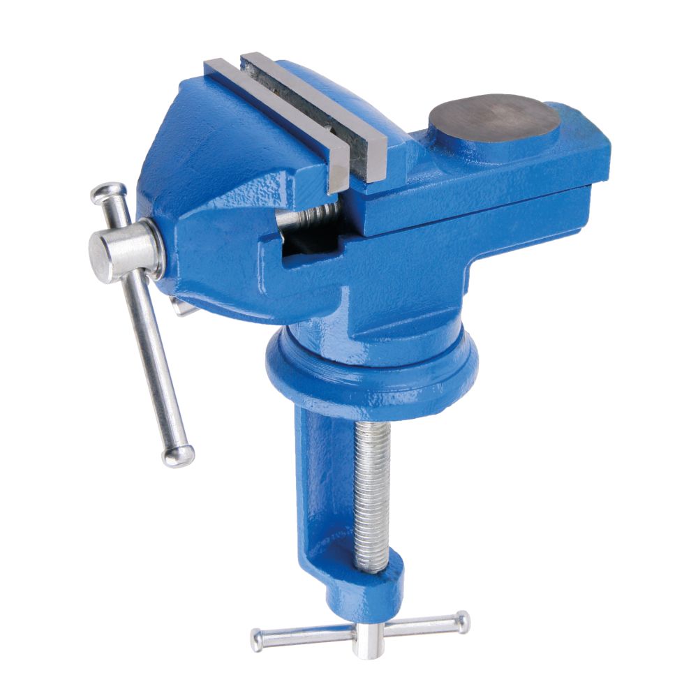 Masivní MINI svěrák s upínáním ke stolu, otočným mechanismem a kovadlinou. Tyto MINI svěráky jsou vhodné pro lehké domácí práce, pro kutily a pod.. Díky šroubovému mechanismu lze přimontovat k jakékoliv desce. Otočný mechanismus usnadňuje natáčení svěráku bez nutnosti demontáže. Tělo a pohyblivé rameno odlité každé z jednoho kusu, zaručují velkou odolnost a pevnost. Šířka čelistí:65 mmMax. rozevření:60 mmMax. tloušťka desky:50 mm