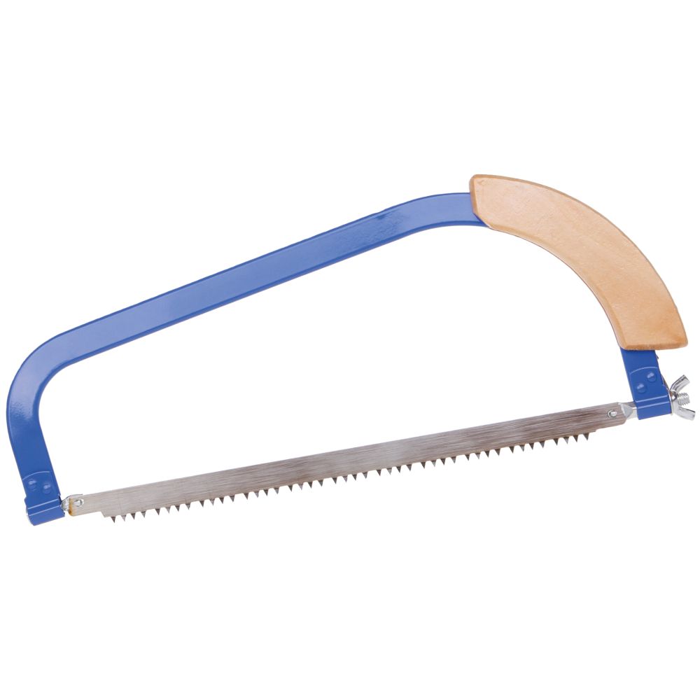Rámová ruční pilka na dřevo s listem a s dřevěnou rukojetí. Praktická zahradnická pilka k prořezávání ovocných stromů a keřů s volitelným úhlem řezu po 45°. Kvalitní napnutí listu je zaručeno napínacím šroubem a tuhým rámem z ploché oceli. Pila zahradní má jemné ozubení, které je vhodné především k prořezávání. Délka listu: 300 mm