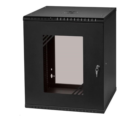 XtendLan 19" nástěnný rozvaděč 9U 600x600, nosnost 60 kg, skleněné kouřové dveře, rozložený, černý EDF_10102690