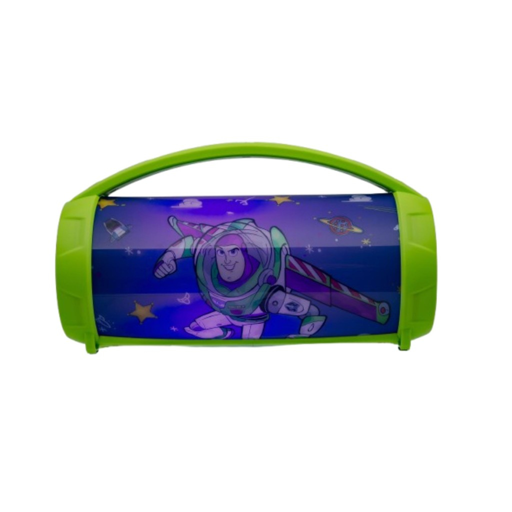 Bluetooth reproduktor značky Lexibook je určený především dětem a nese motiv z oblíbeného filmu Příběh hraček (Toy Story). Zařízení je designově pojato v hravém zeleném provedení s dominantním obrázkem postavy Buzze Rakeťáka na přední straně, která je podsvícená modrým světlem. Tato světelná funkce přidává produktu atraktivitu a zvyšuje zábavu během používání. Reproduktor má praktické oblé tvary a je vybavený pohodlným držadlem, které usnadňuje přenosnost a manipulaci i malým dětem. Zařízení funguje bezdrátově přes Bluetooth, což umožňuje snadné připojení k mobilním telefonům, tabletům nebo dalším audio zařízením. Součástí balení je dobíjecí NiMH baterie, což eliminuje potřebu kupovat další baterie a zajišťuje ekologičtější provoz. Reproduktor také obsahuje mikrofon, který děti mohou využívat například ke zpěvu nebo nahrávání vlastního hlasu, čímž se podporuje jejich kreativita a zábava. Tento produkt spadá do kategorie elektronické zábavy pro děti a zároveň je zařazen do segmentu hraček rozvíjejících fantazii a kreativitu. Díky kombinaci funkčních prvků, jako je osvětlení, mikrofon a bezdrátové připojení, nabízí reproduktor multifunkční využití nejen jako hudební přehrávač, ale i jako interaktivní hračka. Je ideální volbou pro děti, které mají rády postavy z Příběhu hraček a zároveň chtějí objevovat svět hudby a zvukových efektů.