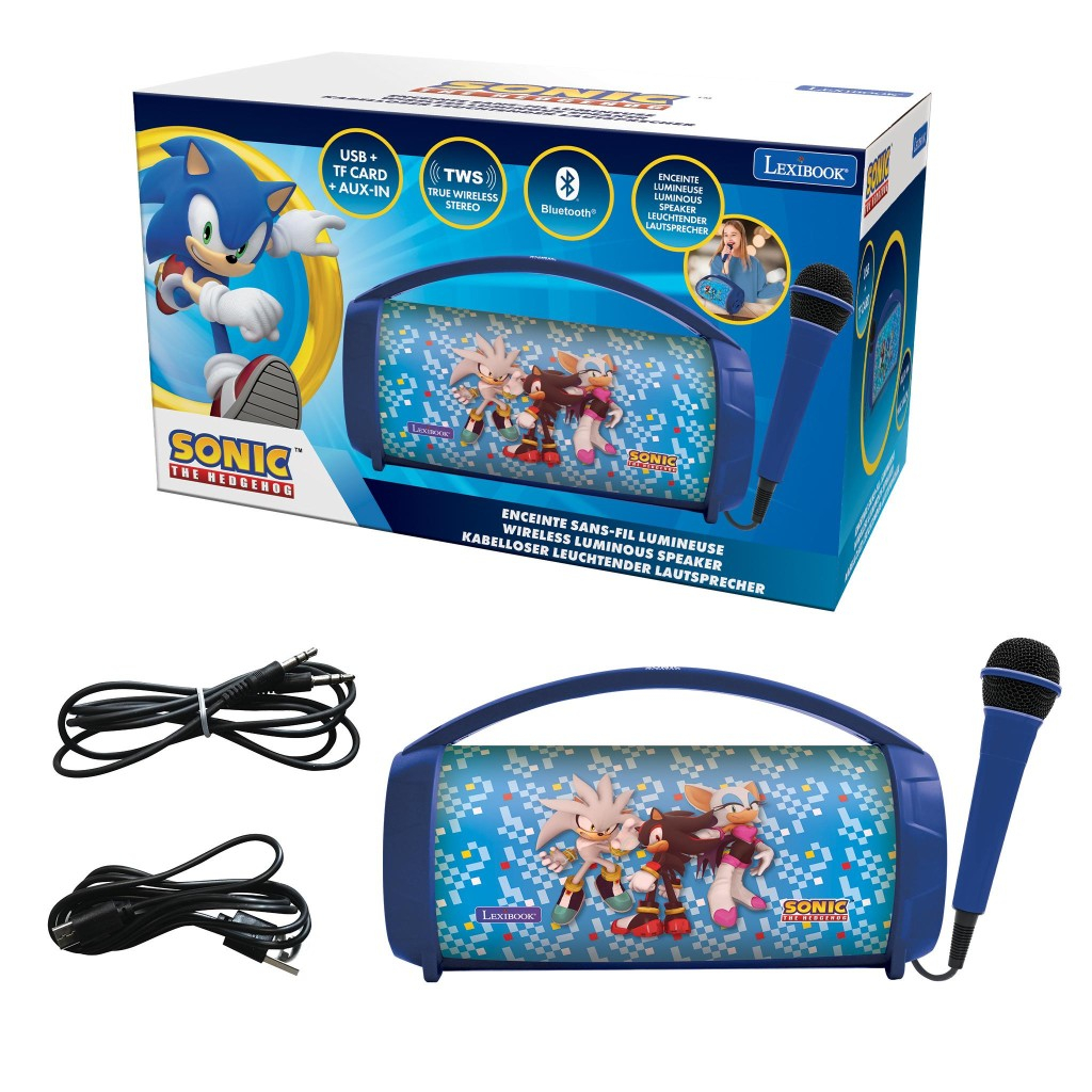 Lexibook Bluetooth reproduktor Sonic s mikrofonem je zábavné a interaktivní zařízení navržené pro děti, které kombinuje oblíbenou postavu Sonic ježek s praktickou elektronikou pro zábavu a rozvoj kreativity. Reproduktor má modrý barevný design s motivy známých postaviček ze světa Sonic, které jsou zobrazeny na povrchu reproduktoru v pixelovaném pozadí. Celý přístroj má ergonomický tvar s praktickým madlem pro snadné přenášení, což umožňuje dětem jednoduše si vzít reproduktor kamkoliv. Zařízení je vybaveno mikrofonem, který umožňuje karaoke a zpěv, čímž podporuje dětskou kreativitu a zábavu. Mikrofon je připojen k reproduktoru kabelem a má stejný tmavě modrý odstín jako okraje samotného reproduktoru. Reproduktor disponuje svítící funkcí, která při přehrávání hudby vytváří světelné efekty, což přispívá k zábavné atmosféře, například při dětských oslavách nebo domácích párty. Funkčně je reproduktor velmi variabilní. Lze ho připojit přes Bluetooth k různým zařízením, což umožňuje bezdrátové streamování hudby. Kromě toho podporuje přehrávání z USB, TF karty i AUX-in vstup, což zajišťuje širokou kompatibilitu s různými zdroji hudby. Zařízení je napájeno jednou NiMH baterií, která je součástí balení, a je dobíjecí přes přiložený USB kabel. Na boční straně reproduktoru jsou umístěny ovládací prvky pro zapnutí, regulaci hlasitosti a přepínání režimů. Celkově je Lexibook Bluetooth reproduktor Sonic s mikrofonem ideálním produktem pro děti, které rády zpívají a poslouchají hudbu, zároveň je vhodný do kategorie elektronické zábavy pro děti. Oživuje oblíbený svět Sonic a díky svému designu a funkčnosti nabízí zábavu i rozvoj hudebních dovedností v jednom elegantním zařízení.