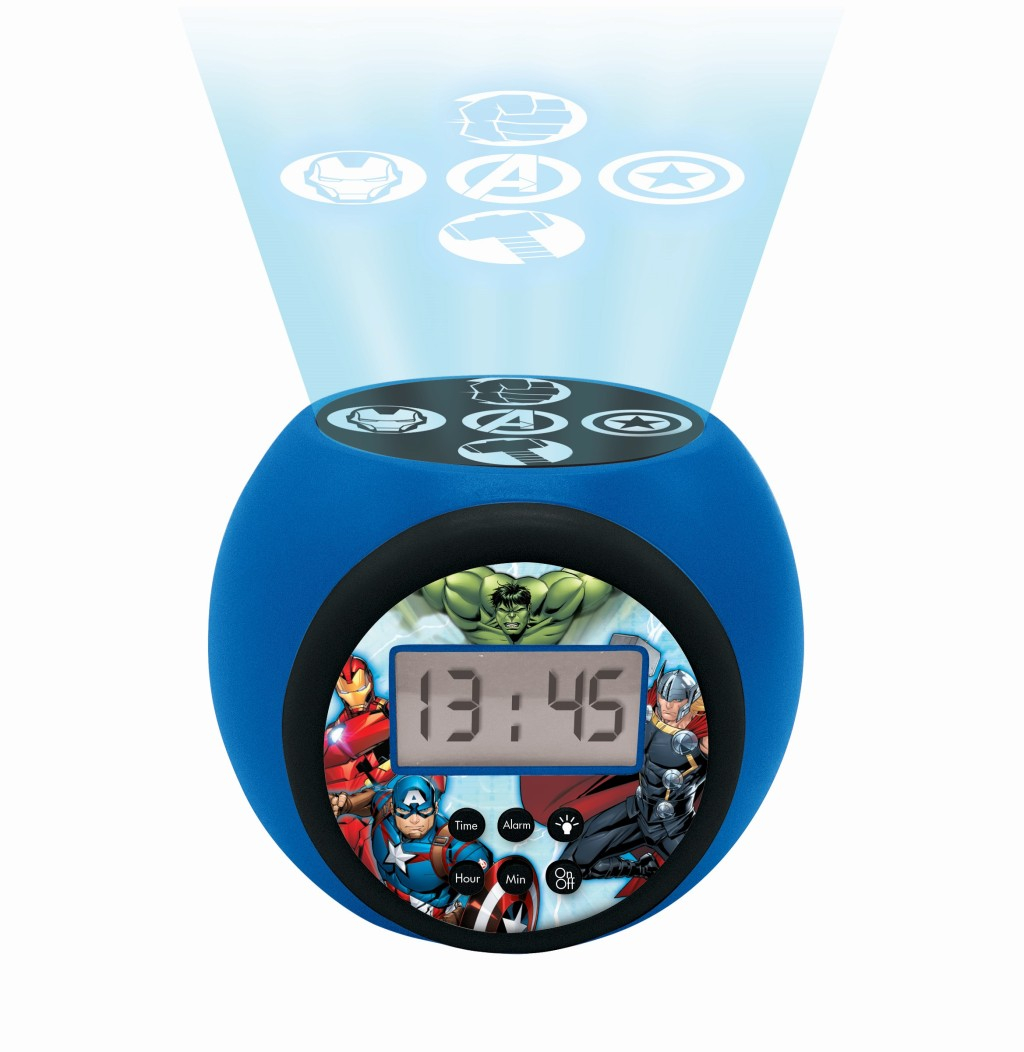 Budík Lexibook s motivem Avengers je určen především dětem a fanouškům této populární superhrdinské skupiny. Jeho kulatý tvar doplňuje modré provedení, které je na přední straně zdobeno obrázky hlavních postav Avengers, včetně Hulka, Iron Mana, Kapitána Ameriky, Thora a Black Panthera. Displej je digitální, přehledný a zobrazuje čas ve formátu 24 hodin. Pod displejem se nachází několik tlačítek pro nastavení času, budíku a zapnutí/vypnutí osvětlení. Tento budík vyniká svou funkcí stropního projektoru. Na horní části budíku jsou umístěny čtyři symboly jednotlivých Avengers, které lze promítat na strop či zeď v různých barevných variantách – oranžové, červené či modré světlo. Projektor tak vytváří příjemnou a zábavnou atmosféru, která může dětem usnadnit usínání. Ovládání je jednoduché a umožňuje zapínat či vypínat promítání podle potřeby. Pro svůj provoz budík vyžaduje tři AAA baterie, které nejsou součástí balení. Díky své velikosti a tvaru je snadno přenosný a může být umístěn na noční stolek v dětském pokoji. Tento produkt spadá do kategorie dárků a ostatních hraček, které jsou vhodné jako dáreček pro malé i větší děti, které mají rády Avengers. Celkově budík kombinuje praktickou funkci měření času s vizuální zábavou díky tematickému designu a projekci. Jeho ovládání je intuitivní a design atraktivní, což z něj činí vhodný doplněk dětského pokoje, který zároveň podporuje pravidelný režim spánku a probouzení.