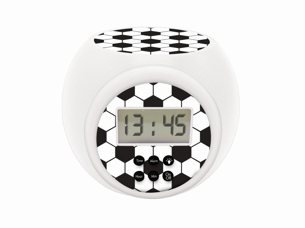 Lexibook budík fotbal se stropním projektorem je digitální budík navržený zejména pro děti a fanoušky fotbalu. Jeho kulatý tvar a dekorace v černobílém hexagonálním vzoru připomínajícím fotbalový míč dodávají budíku hravý a sportovní vzhled. Na přední straně se nachází přehledný digitální displej s ukazatelem času a pěti ovládacími tlačítky, která slouží k nastavení času, budíku, minut a hodin, a také k zapnutí a vypnutí osvětlení. Tento budík je vybaven speciálním stropním projektorem, který promítá motiv fotbalového míče na strop nebo zeď v místnosti. Projektor nabízí tři barevné varianty světla – modrou, oranžovou a červenou – což umožňuje přizpůsobit noční osvětlení podle nálady nebo preference dítěte. Projekce může sloužit také jako noční světlo a pomáhá tak vytvořit příjemnou atmosféru před spaním. Funkce nočního světla je doplněna časovačem s možností nastavení automatického vypnutí po 5, 10 nebo 15 minutách. Díky tomu je možné světlo nechat svítit jen po krátkou dobu, což je praktické zejména pro uklidnění dítěte před usnutím. Budík je napájen třemi AAA bateriemi, které nejsou součástí balení, což umožňuje flexibilní umístění kamkoli v pokoji bez závislosti na elektrické zásuvce. Celkově je Lexibook budík fotbal se stropním projektorem multifunkčním pomocníkem pro dětský pokoj, který kombinuje praktický digitální budík s dekorativní a uklidňující funkcí nočního světla s projekcí. Jeho design a funkce jsou přizpůsobeny dětem a sportovním nadšencům, kteří ocení motiv fotbalu i hravé barevné osvětlení.