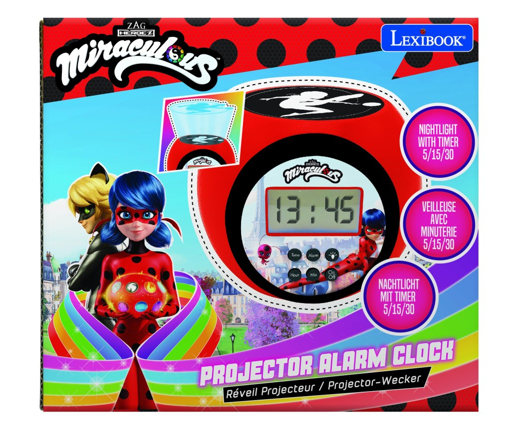 Budík Lexibook Kouzelná Beruška se stropním projektorem je multifunkční dětský budík inspirovaný populární postavou z animovaného seriálu Miraculous. Jeho kulatý tvar a výrazná červená barva s černými detaily evokují vzhled berušky, což osloví zejména fanoušky tohoto tématu. Na přední straně se nachází digitální LCD displej, který zobrazuje čas ve 24hodinovém formátu. Pod displejem se nachází několik ovládacích tlačítek, díky kterým lze nastavovat čas, budík, a také zapínat či vypínat podsvícení. Jedinečnou funkcí tohoto budíku je možnost projekce postavy Kouzelné Berušky na strop, což vytváří příjemnou noční atmosféru v dětském pokoji. Projekce může být nastavena ve třech barevných variantách – červené, oranžové a modré – podle momentální nálady nebo potřeby. Tato funkce je ideální jako noční světlo s časovačem, který lze nastavit na 5, 15 nebo 30 minut, čímž se šetří baterie a zároveň zajišťuje jemné osvětlení během usínání. Budík je napájen třemi AAA bateriemi, které nejsou součástí balení. Kromě projekce nabízí také klasický budík s funkcí opakovaného buzení (snooze), což je praktické pro děti, které potřebují více času na probuzení. Celkový design je doplněn motivy ze seriálu Miraculous, včetně obrázku hlavní hrdinky, což potvrzuje jeho tematickou příslušnost a zvyšuje atraktivitu pro malé uživatele. Tento budík je vhodným dárkem pro děti, které mají rády zábavné a zároveň funkční doplňky do svého pokojíčku. Kombinace digitálního zobrazení času, možnosti nastavení alarmu, barevných projekcí a motivu Kouzelné Berušky jej činí praktickým a zároveň stylovým pomocníkem při každodenním vstávání.
