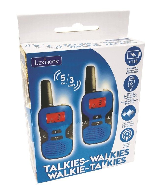 Digitální nabíjecí vysílačky Lexibook jsou navrženy pro děti jako zábavná a praktická elektronická hračka, která podporuje rozvoj fantazie a komunikace. Vysílačky mají ergonomický tvar a kombinaci barev modré a černé, což je činí atraktivními a snadno ovladatelnými. Na přední straně se nachází červeně podsvícený displej, který zobrazuje aktuální kanál a další informace, spolu s několika tlačítky pro ovládání funkcí jako menu, scan, monitorování a osvětlení. Zadní strana obsahuje praktický klip pro snadné připevnění na opasek nebo kapsu. Tyto vysílačky disponují dosahem až 5 kilometrů, což umožňuje komunikaci na velké vzdálenosti, ideální pro venkovní aktivity, jako jsou výlety či hry na hřišti. Nabíjení je zajištěno prostřednictvím dobíjecích NiMH baterií, které jsou součástí balení, a umožňují provoz s výdrží přes 14 hodin na jedno nabití. Baterie se nabíjejí pomocí micro-USB kabelu, který je rovněž součástí sady. Díky digitálnímu zvuku a možnosti volby z osmi kanálů nabízejí jasnou a kvalitní komunikaci bez rušení. Vysílačky jsou vhodné pro použití jak v interiéru, tak i v náročnějším venkovním prostředí. Jsou ideální pro děti od 7 let, které si tak mohou bezpečně a zábavně navzájem komunikovat při různých aktivitách. Produkt je zařazen do kategorizace jako elektronika pro děti a elektronická zábava, což potvrzuje jeho vzdělávací a hravou povahu. Balení obsahuje dvě vysílačky, jejich nabíjecí kabely a dobíjecí baterie, což umožňuje okamžité použití bez nutnosti dokupovat příslušenství. Celkově jsou Lexibook digitální nabíjecí vysílačky praktickým a bezpečným nástrojem pro dětskou komunikaci, který rozvíjí jejich sociální dovednosti a zároveň nabízí dlouhou výdrž baterie a jednoduché ovládání přizpůsobené dětským rukám. Jsou vhodné pro rodinné výlety, hry a další aktivity, kde je potřeba udržet kontakt na větší vzdálenost.