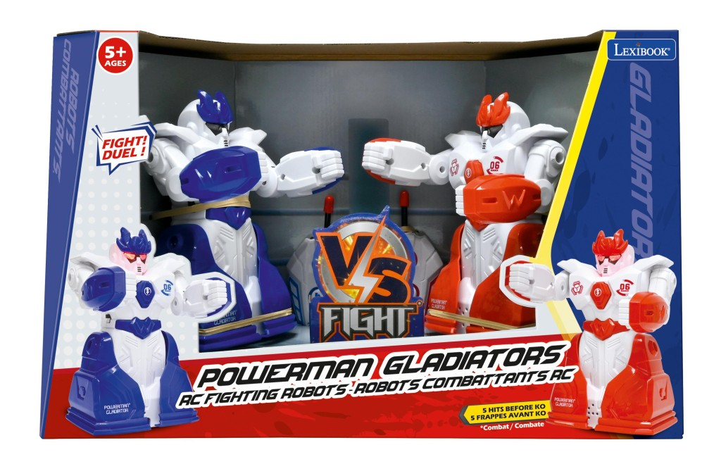 Lexibook dva bojovníci na dálkové ovládání představují zábavnou sadu dvou robotických figurek, které jsou určeny pro děti od 5 let. Tyto bojující roboty v barevném provedení – jeden modrý a druhý červený – jsou vyrobeny z pevného plastu a mají robustní design připomínající gladiátory. Každý robot je vybaven vlastním dálkovým ovládáním, které umožňuje snadné řízení pohybu vpřed, vzad a také provádění bojových pohybů pěstmi. Světelné efekty se rozsvěcují v oblasti hlavy robotů a doprovází je zvukové efekty, což zvyšuje realistický dojem boje. Tyto elektronické hračky patří do kategorie elektroniky pro děti a elektronické zábavy, což podtrhuje jejich interaktivní charakter. Bojovníci jsou navrženi tak, aby podporovali kreativitu a fantazii dětí, které díky nim mohou zažít vzrušující souboje. Hra je vhodná pro hraní ve dvou, což z ní dělá skvělou volbu pro společné chvíle s kamarády nebo rodinou. Dálková ovládání mají ergonomický tvar a jednoduché ovládací prvky, které jsou uzpůsobeny dětem, aby je mohly pohodlně používat. Pro provoz robotů je potřeba použít 6 baterií typu AA, které nejsou součástí balení. Hračka je dodávána v atraktivním balení, které umožňuje snadnou prezentaci a skladování. Díky svým funkcím a vzhledu je tento set ideální pro rozvoj motorických dovedností, koordinace a soutěživosti dětí, přičemž zároveň nabízí zábavu plnou akce a napětí v bezpečném domácím prostředí.