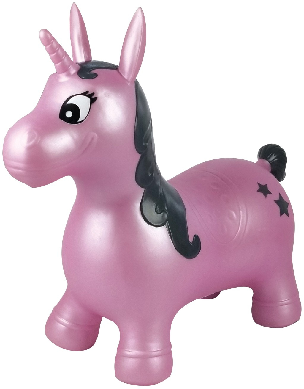 Lexibook nafukovací skákací jednorožec je zábavná a barevná sportovní hračka určená pro děti od 3 let. Tento nafukovací jednorožec je vyroben z pevného, ale pružného materiálu, který umožňuje bezpečné skákání a poskakování jak v interiéru, tak i venku. Jeho povrch má lesklý růžový odstín s černou hřívou a ocasem, doplněný o roztomilé černé hvězdičky na zadní části těla a výrazné, přátelské oči, které dodávají hračce veselý a přívětivý vzhled. Rozměry nafukovacího jednorožce jsou přibližně 57 cm na délku, 25 cm na šířku a 50 cm na výšku, což z něj činí kompaktní a přitom dostatečně stabilní hračku pro malé děti. Výška sedací části je kolem 28 cm, což umožňuje dětem pohodlně na jednorožce usednout a skákat. Hračka je navržena tak, aby podporovala rovnováhu, koordinaci a motorické dovednosti dětí během hry. Součástí balení je také ruční pumpička, která usnadňuje nafukování a připravení jednorožce k použití. Díky své konstrukci je skákací jednorožec vhodný pro venkovní i vnitřní použití, což umožňuje dětem užívat si aktivní zábavu za každého počasí. Na obrázcích je vidět, že je hračka oblíbená jak doma, tak i na zahradě, kde děti mohou bezpečně poskakovat pod dohledem dospělých. Jednorožec je stabilní a díky svému tvaru i atraktivní pro děti, které si díky němu mohou užít pohybovou aktivitu hravou formou. Tento produkt spadá do kategorie sportovních hraček a je ideální pro podporu zdravého pohybu u malých dětí.