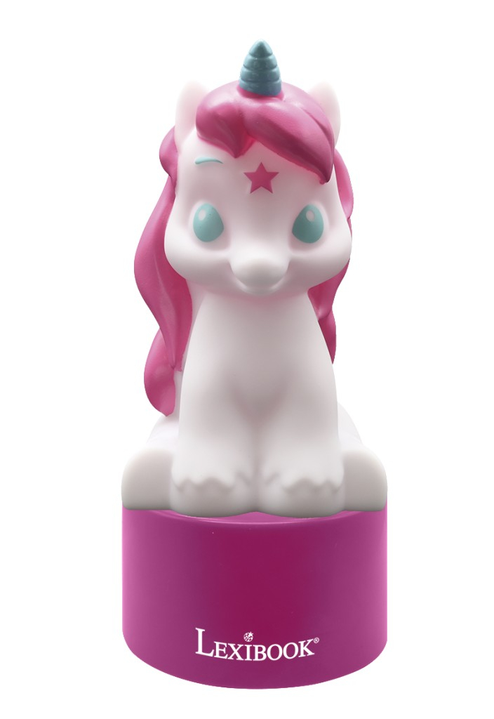 Noční světlo s reproduktorem Lexibook v podobě roztomilého jednorožce je ideálním doplňkem do dětského pokoje. Tento výrobek kombinuje funkci nočního světla a reproduktoru, což umožňuje příjemné osvětlení a poslech hudby nebo pohádek během usínání. Světlo je navrženo jako figurka jednorožce s výraznou růžovou hřívou a světle modrým rohem na hlavě, což z něj činí atraktivní a přátelský motiv pro děti. Základna světla je fialové barvy a nese viditelné logo značky Lexibook. Zespodu je umístěn reproduktor, který je propojen kabelem pro připojení externího zdroje zvuku. Noční světlo je napájeno třemi AAA bateriemi, které nejsou součástí balení, což nabízí možnost snadné výměny zdroje energie. Tvar jednorožce je ergonomicky přizpůsoben tak, aby bylo světlo stabilní a bezpečné pro umístění na noční stolek. V praxi noční světlo poskytuje jemné, uklidňující osvětlení, které pomáhá dětem snadněji usnout. Současně umožňuje přehrávání hudby nebo zvuků přes integrovaný reproduktor, což podporuje relaxaci a příjemnou atmosféru v místnosti. Díky svému designu a multifunkčnosti je tento produkt vhodný jako dárek a může být využíván nejen v dětských pokojích, ale také v dalších prostorách, kde je potřeba jemného osvětlení a hudebního doprovodu.