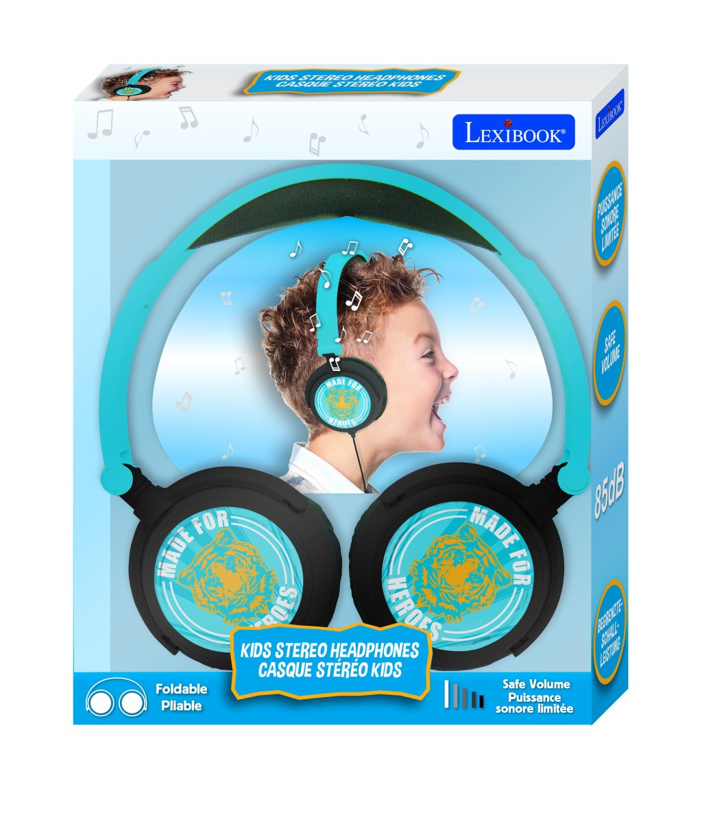 Lexibook skládací drátová sluchátka Made for Heroes jsou navržena speciálně pro děti a patří do kategorie elektroniky pro děti a elektronické zábavy. Tyto sluchátka kombinují praktický design s přitažlivým vizuálním motivem, který zaujme malé uživatele. Sluchátka mají výraznou modrou barvu s černými náušníky, na kterých je emblém s nápisem "Made for Heroes" a stylizovaným motivem tygra v oranžovo-modrém provedení, což dodává produktu hravý a zároveň odvážný vzhled. Díky skládací konstrukci jsou sluchátka snadno přenosná a skladná, což je ideální pro děti, které je mohou nosit s sebou do školy nebo na výlety. Polstrovaná část přes hlavu zajišťuje pohodlné nošení i po delší dobu, zatímco měkké náušníky přispívají k dobrému utěsnění zvuku a pohodlí. Sluchátka jsou drátová, což znamená, že jsou kompatibilní s většinou běžných audio zařízení vybavených 3,5mm jackem. Jednou z klíčových vlastností těchto sluchátek je omezení maximální hlasitosti na bezpečných 85 dB, což chrání dětský sluch před nebezpečným přetížením zvukem. Tento prvek je důležitý pro rodiče, kteří chtějí zajistit zdravé používání elektronických zařízení svými dětmi. Produkt je vhodný pro děti, které chtějí poslouchat hudbu, audioknihy nebo jiné zvukové záznamy v bezpečném a pohodlném prostředí. Celkově jsou Lexibook skládací drátová sluchátka Made for Heroes vhodná jako doplněk k rozvíjení fantazie a kreativity dětí, a to nejen díky svému vzhledu, ale i praktickým vlastnostem a bezpečnostním prvkům. Jsou ideální volbou pro elektronickou zábavu, která podporuje samostatné poslechové zážitky v dětském věku.