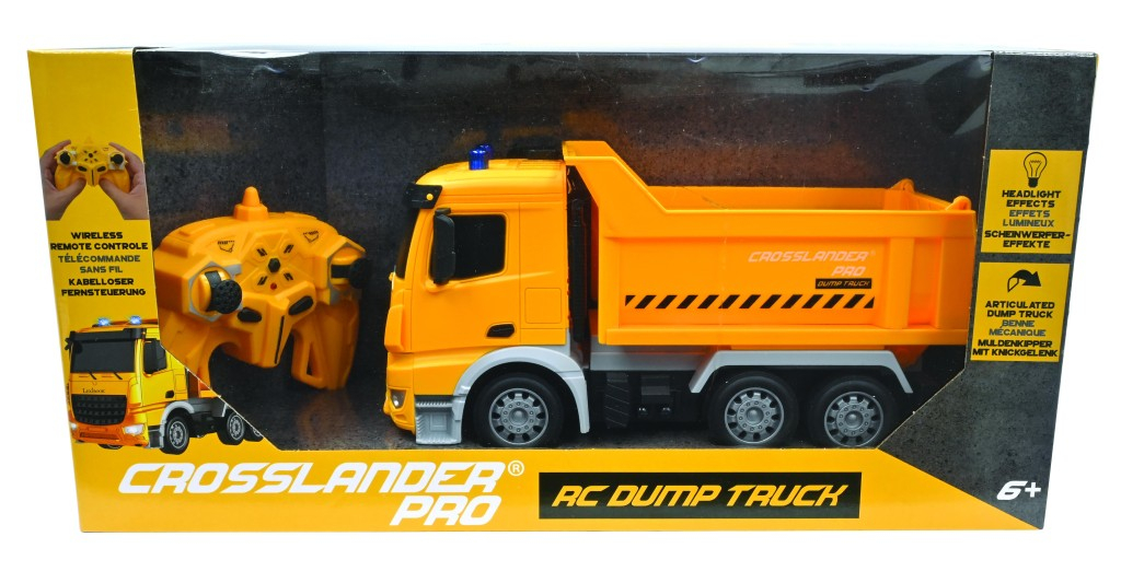 Lexibook sklápěčka na dálkové ovládání je detailně zpracovaná modelová stavební sklápěcí nákladní vozidlo, které nabízí realistickou hru s možností plné ovladatelnosti pomocí bezdrátového dálkového ovladače. Vozidlo je vyrobeno převážně z kvalitního plastu v jasně žluté barvě s šedými detaily podvozku a černými doplňky, což mu dodává autentický a robustní vzhled. Na kabině jsou umístěny modré majáky, které spolu s funkčními světly na přední části zvyšují věrohodnost a přispívají ke hře i ve zhoršených světelných podmínkách. Model má tři nápravy s realisticky propracovanými koly, která umožňují stabilní jízdu. Nejvýraznější funkcí sklápěčky je její sklápěcí korba, kterou lze ovládat dálkově a automaticky vyklápět pod úhlem 45 stupňů, čímž napodobuje skutečný pracovní mechanismus sklápěcích vozidel. Díky této funkci je hra s vozidlem ještě zábavnější a umožňuje simulovat skutečné pracovní situace, například vykládání materiálu na stavbě. Dálkový ovladač je ergonomicky tvarovaný a barevně sladěný s vozidlem, což usnadňuje jeho držení a ovládání i dětem. Ovladač disponuje dvěma joysticky a několika tlačítky, které umožňují snadné řízení pohybu vozidla i sklápění korby. Vozidlo je napájeno baterií typu NiMH, která je součástí balení, což umožňuje okamžité použití po vybalení. Sklápěčka je určena pro děti od 6 let a je vhodná pro hraní doma i venku. Celý model je dodáván v atraktivním obalu, který zobrazuje vozidlo i ovladač a obsahuje základní informace o funkcích, včetně světelných efektů a možnosti automatického sklápění. Tento RC model sklápěčky je vhodnou volbou pro děti a nadšence do RC vozidel, kteří hledají kombinaci zábavy, realismu a snadného ovládání.