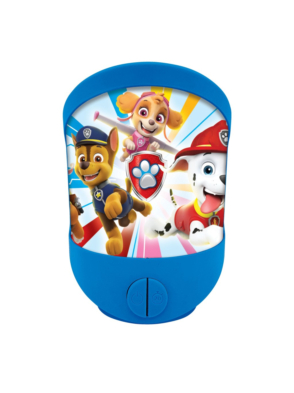 Lexibook stolní a nástěnná lampička Tlapková patrola je praktickým a zároveň dekorativním doplňkem do dětského pokoje, který potěší zejména malé fanoušky oblíbeného animovaného seriálu. Lampička je vyrobena z modrého plastu s barevným motivem postaviček z Tlapkové patroly, což jí dodává hravý a přívětivý vzhled. Motiv je umístěn na přední části lampy, kde je podsvícení, které zajišťuje příjemné a jemné světlo vhodné na večerní použití. Lampička je univerzální, lze ji používat buď jako stolní lampu, nebo připevnit na stěnu, což zvyšuje její funkčnost a umožňuje ji umístit přesně tam, kde je potřeba. Na spodní části jsou dva ovládací prvky – tlačítko zapnutí a tlačítko pro nastavení časovače, který automaticky vypne světlo po 20 minutách. Tento časovač je praktický pro usínání dětí, protože umožňuje postupné zhasnutí světla bez nutnosti vstávat a lampu ručně vypínat. Lampička je napájena třemi bateriemi AAA, které nejsou součástí balení, což zajišťuje její mobilitu bez závislosti na elektrické zásuvce. Světlo, které vydává, je dostatečně silné na to, aby osvětlilo prostor kolem, ale zároveň dostatečně jemné, aby nerušilo při usínání. Díky svému designu a funkčnosti je tato lampička vhodným dárkem pro děti, které mají rády Tlapkovou patrolu a potřebují večerní světlo do svého pokoje.