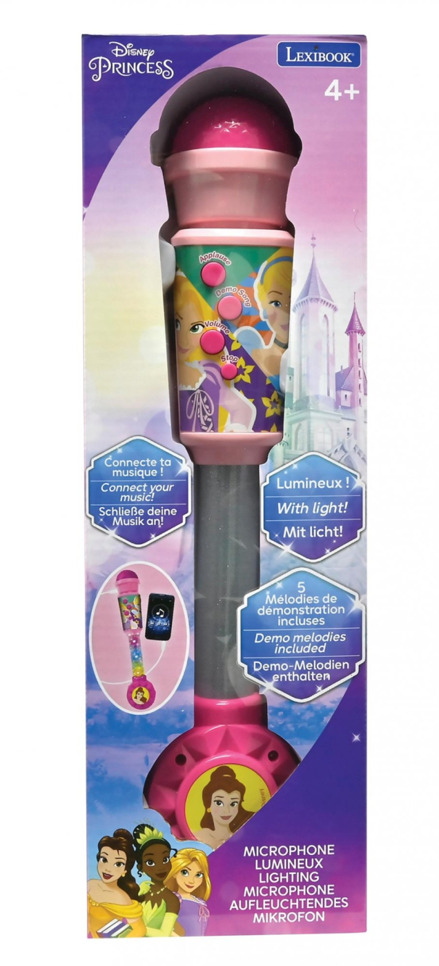 Lexibook svítící trendy mikrofon Disney princezny s melodiemi je interaktivní hračka určená dětem od 4 let, která podporuje rozvoj fantazie a kreativity. Tento mikrofon je inspirován populární tématikou Disney princezen, což je patrné z barevného designu s obrázky známých postav na těle mikrofonu. Jeho růžovo-fialová barevná kombinace a lesklé prvky dodávají produktu atraktivní vzhled, který osloví především malé zpěvačky a fanoušky princeznovských příběhů. Mikrofon měří zhruba 33 cm na délku, což zajišťuje pohodlné držení v dětské ruce. Má několik ovládacích tlačítek umístěných na přední straně, která umožňují přehrávání pěti přednastavených melodií, regulaci hlasitosti, zastavení přehrávání a také funkci tleskání, která může aktivovat speciální zvukové efekty. Mikrofon je vybaven podsvícením, které se rozsvěcuje během používání, což přidává na zábavě a poutavosti. Transparentní část rukojeti je navíc zdobena třpytkami, které se krásně lesknou, když je mikrofon v provozu. Zařízení lze propojit s externím zařízením, například chytrým telefonem, pomocí přiloženého kabelu s 3,5 mm jackem, což umožňuje přehrávání oblíbených písní a zpěv s doprovodem. Napájení mikrofonu zajišťují dvě baterie typu AA, které nejsou součástí balení. Díky tomu je možné mikrofon používat bez nutnosti připojení k elektrické síti, což zvyšuje mobilitu a pohodlí při hraní. Mikrofon je tedy vhodný pro domácí použití i hravé vystoupení na různých dětských oslavách či školních akcích. Celkově je Lexibook svítící trendy mikrofon Disney princezny s melodiemi zábavnou a kreativní hračkou, která kombinuje světlo, hudbu a oblíbené pohádkové motivy. Jeho ergonomický tvar, jednoduché ovládání a propojení s hudebními zařízeními z něj činí ideální volbu pro malé zpěváky, kteří si chtějí užít svůj vlastní koncert plný světel a melodií.