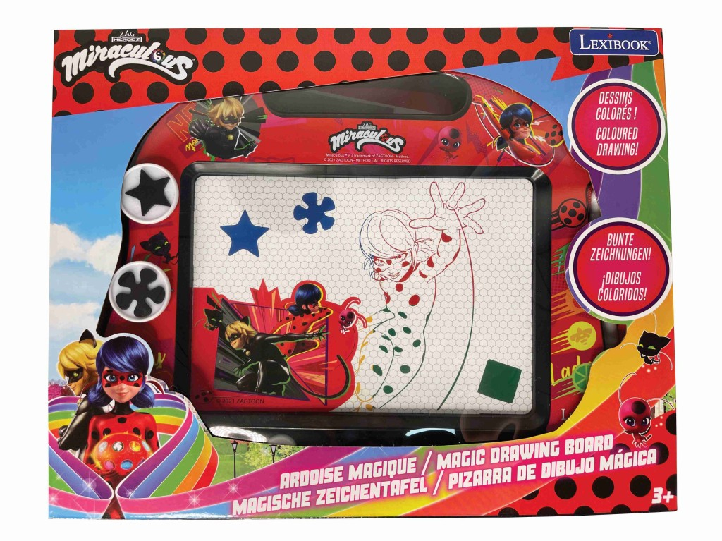Lexibook vícebarevná kreslící tabulka Kouzelná Beruška s razítky je kreativní výtvarná pomůcka určená především dětem od tří let. Tato kreslící tabulka je inspirována populárním tématem Miraculous, což ji činí atraktivní pro malé fanoušky této série. Tabulka má ergonomický, lehce přenosný tvar s integrovaným držadlem pro snadnou manipulaci a přenášení. Okraje tabulky jsou červené s černými puntíky, typickými pro motiv Kouzelné Berušky, a doplněné o barevné ilustrace postav z tohoto světa. Hlavní kreslící plocha je tvořena speciální magnetickou tabulí, která umožňuje vytvářet barevné obrázky pomocí přiloženého magnetického pera. Kreslení je tak bez potřeby inkoustu či fixů, což zajišťuje čistotu a snadnou údržbu. Na levé straně tabulky jsou umístěna tři razítka v různých tvarech – hvězda, květina a čtverec – které děti mohou použít k obohacení svých výtvorů. Smazání obrázků je jednoduché a rychlé pomocí posuvného tlačítka umístěného v dolní části tabulky, což umožňuje neomezeně opakovat kreativní proces. Tabulka je vyrobena z odolných materiálů vhodných pro dětské používání. Součástí balení je magnetické pero pevně připevněné k tabulce šňůrkou, aby se neztratilo. Celý design podporuje rozvoj fantazie, jemné motoriky a kreativního myšlení. Produkt je vhodný pro domácí i školní využití a patří do kategorie kreativních hraček a výtvarných školních potřeb. Díky svému barevnému provedení a tématu Kouzelné Berušky je tato kreslící tabulka ideální volbou pro malé umělce, kteří chtějí tvořit zábavné a barevné kresby opakovaně a bez nepořádku.