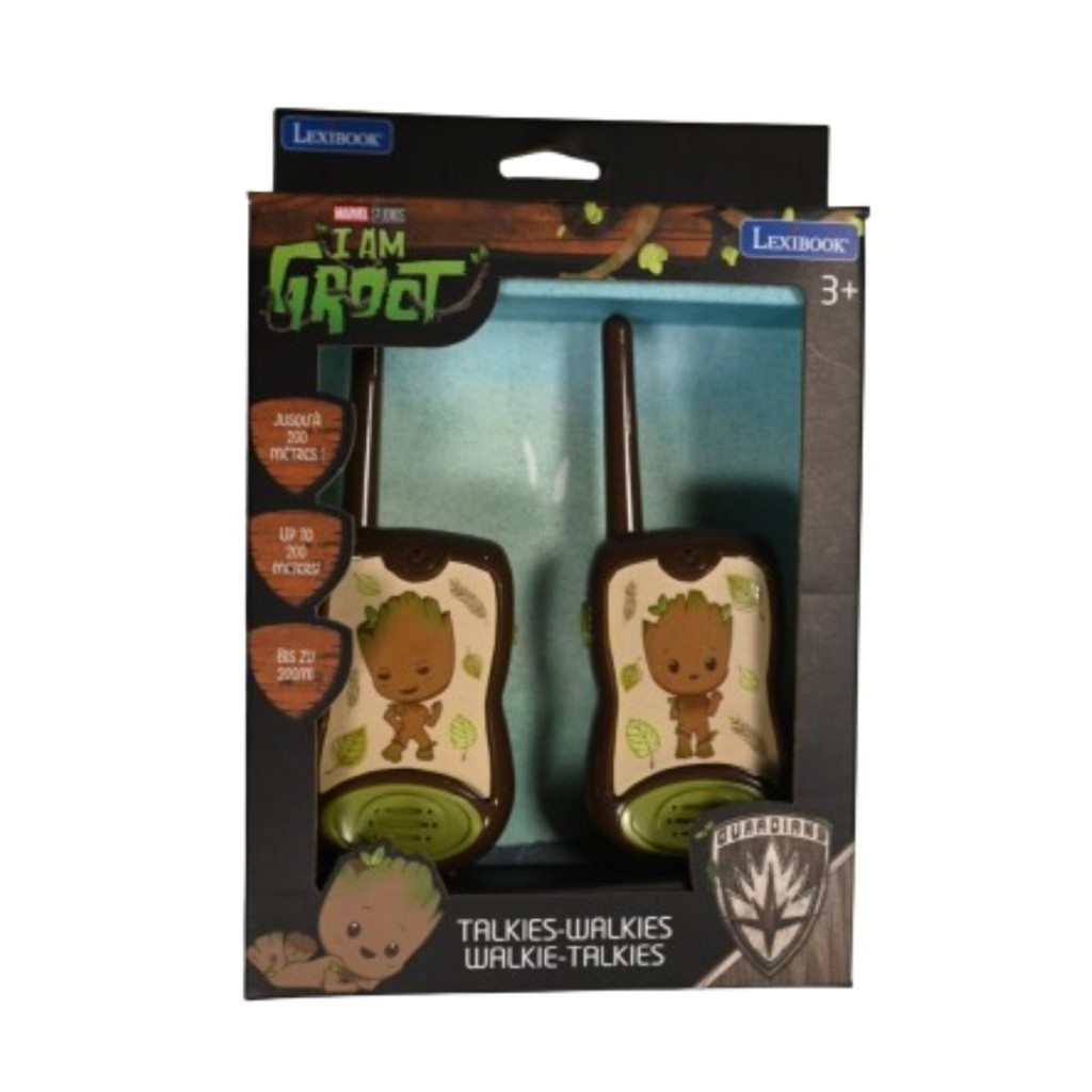 Lexibook vysílačky Groot představují dvojici dětských komunikačních zařízení navržených s motivem oblíbené postavičky Groot z Marvel univerza. Vysílačky jsou určeny dětem od 3 let a nabízí dosah až 200 metrů, což umožňuje bezpečnou a zábavnou komunikaci na delší vzdálenost. Každá vysílačka má ergonomický tvar vhodný pro dětské ruce a je vyrobena z odolného plastu v přírodních barvách hnědé a zelené, které odkazují na charakter Groota. Na přední straně jsou ozdobeny roztomilými ilustracemi Groota s motivy listů, což zvyšuje atraktivitu pro malé fanoušky. Zařízení funguje na 6 baterií typu AAA, které nejsou součástí balení. Na boku každé vysílačky se nachází zelené tlačítko pro vysílání (TALK) a přepínač pro zapnutí a výběr kanálu, což umožňuje jednoduché ovládání i pro malé děti. Vysílačky jsou vybaveny anténou, která zajišťuje dobrý příjem signálu. Na spodní části je reproduktor v zelené barvě, který je dostatečně hlasitý pro jasné přenášení hovoru. Balení obsahuje dvě vysílačky, které jsou připravené k okamžité hře po vložení baterií. Produkt je zařazen do kategorie elektronické zábavy a elektroniky pro děti, přičemž podporuje rozvoj fantazie a kreativity díky možnosti verbální komunikace a hry na vzdálenost. Vysílačky Lexibook Groot jsou ideálním doplňkem pro děti, které chtějí zažít dobrodružství a zůstat v kontaktu s kamarády či rodinou při venkovních hrách.