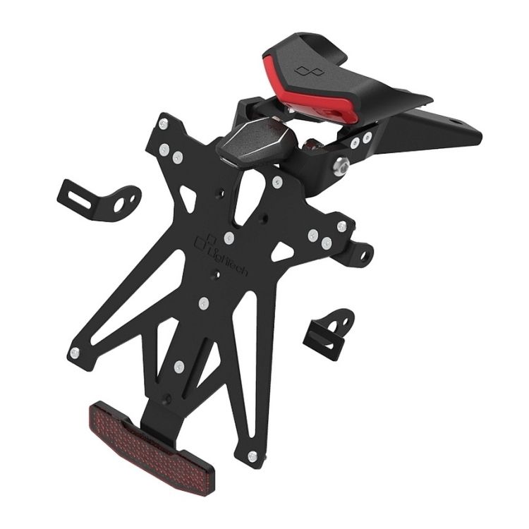 Držák SPZ LighTech – KTM Duke 790 / 890 R / 890 GP Lehký a odolný držák registrační značky vyrobený ze speciální kompozitní směsi uhlíkového vlákna a PA12 nylonu. Navržen v souladu s předpisy a s důrazem na sportovní vzhled. Obsahuje schválené osvětlení SPZ a odrazku Univerzální úchyty pro originální i aftermarketové blinkry Nastavitelná poloha blinkrů a odrazky Snadná montáž – vše potřebné v balení Volitelná sada barevných šroubů (TAR025) pro doladění vzhledu Kompatibilita – pro motocykly KTM: Duke 790 — 2018 – 2024 Duke 890 GP — 2020 – 2023 Duke 890 R — 2020 – 2023 Balení: kompletní sada Barva: černá Materiál: kompozit karbon/PA12 nylon