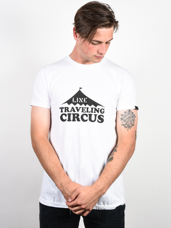 Bílé pánské triko Line Traveling Circus Andy Flip WHITE od legendární freeski značky s potiskem šapitó na hrudi má krátký rukáv, kulatý výstřih a je Regular Fit. Přírodní materiál je prodyšný, ale zároveň dostatečně pevný, takže se nemusíš bát, že ti nevydrží. Vnitřní potisk siluety a nápisu I am a skier.