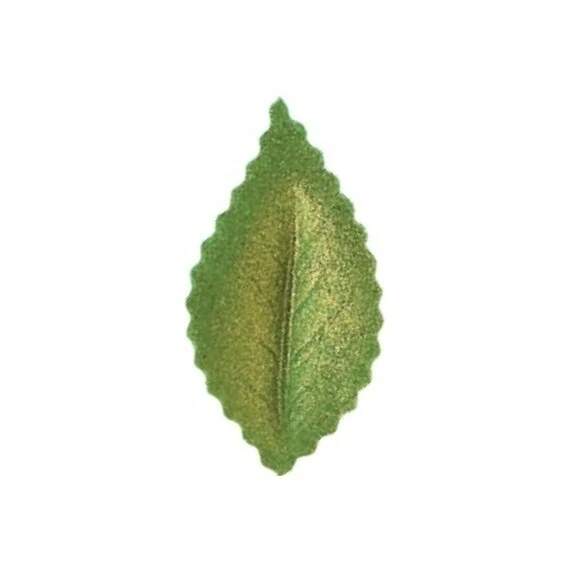 LÍSTEČKY, zelený pozlacený, oplatek – 10 ks. Oplatkový lísteček (jedlý papír) vhodný pro dekoraci cukrářských výrobků. Jestliže potřebujete menší velikost, můžete oplatek stříhat nůžkami. Velikost lístečku: délka 4 cm, šířka 2 cm. Složení: bramborový škrob, aroma, zahušťovadlo E466; lešticí látka E904; barviva: E133,E172, E102. Barvivo E102 může mít negativní vliv na činnost a pozornost dětí. Skladujte v suchu. Výživové hodnoty na 100g výrobku: energie 1439 kJ,/ 341 kcal; tuky 0,5 g ( z toho nasycené mastné kyseliny 0 g); sacharidy 84,5 g (z toho cukry 0,3 g); bílkoviny 0,15 g; sůl 0,06 g