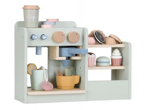 Little Dutch Kávovar dřevěný velký s příslušenstvím Coffee House / od 3 let