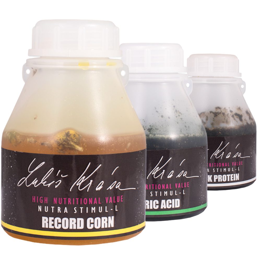 Jedná se možná o nejlepší přírodní tekuté ingredience na světě, které kapry stimulují k přijímání potravy a aktivně působí na chuťové pohárky. Ty nejlepší tekuté ingredience, které jsem za léta při vývoji návnad a nástrah poznal. Celá řada Lukáš Krása je vrcholem mého umění a vědění o kaprech a jejich vztahu k potravě. Jedná se možná o nejlepší přírodní tekuté ingredience na světě, které kapry stimulují k přijímání potravy a aktivně působí na chuťové pohárky. Nutra Stimul obsahuje také naší speciální směs aminokyselin, kterou kapři spojují s nutričně bohatou potravou a kterou vyhledávají pomocí čichového ústrojí na velkou dálku. Nutra Stimul-L je určen především k dipování nástrah, PVA, pro tvorbu past a zalití návnad, které se nejprve navlhčí a poté zapráší přírodním stimulátorem Nutra Stimul – P. Na návnadách se vytvoří velmi atraktivní vrstva, která je pro ryby neodolatelná. Protože výrobky Nutra Stimul jsou vyráběny pouze z přírodních látek, nemají vždy stálou barvu.