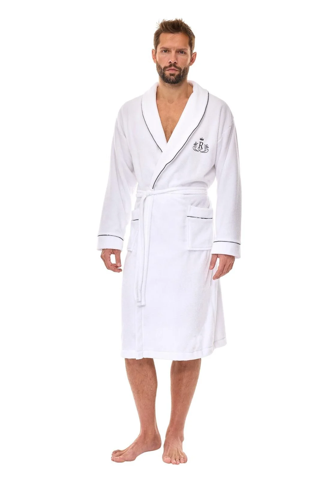 Pánský župan - příjemná měkká pletená směs - se šálou - jemná výšivka na hrudi - zavazování v pase - našité boční kapsy Složení: 60 % bambus, 40 % bavlna