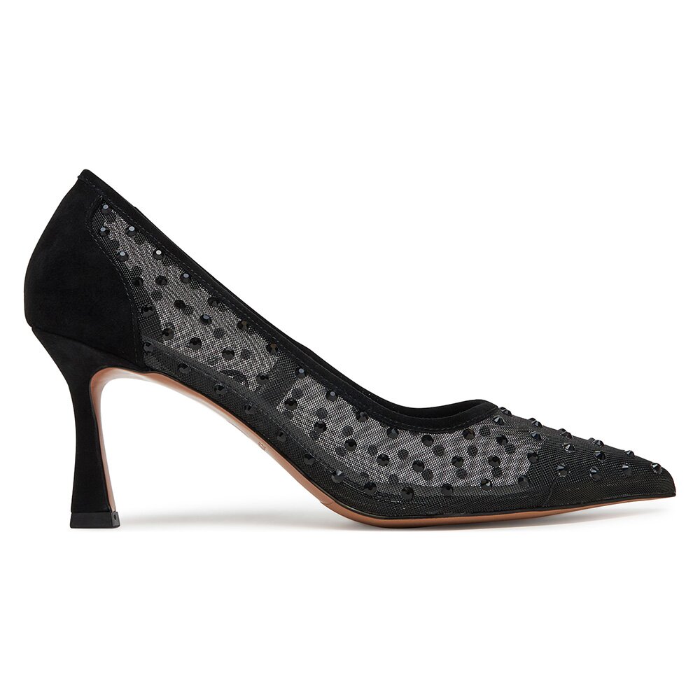 Lodičky ČERNÁ Látkový materiál,Přírodní kůže (useň) - Semiš EVA MINGE EVA-01 Czarny EVA MINGE Dámské/Obuv/Lodičky
