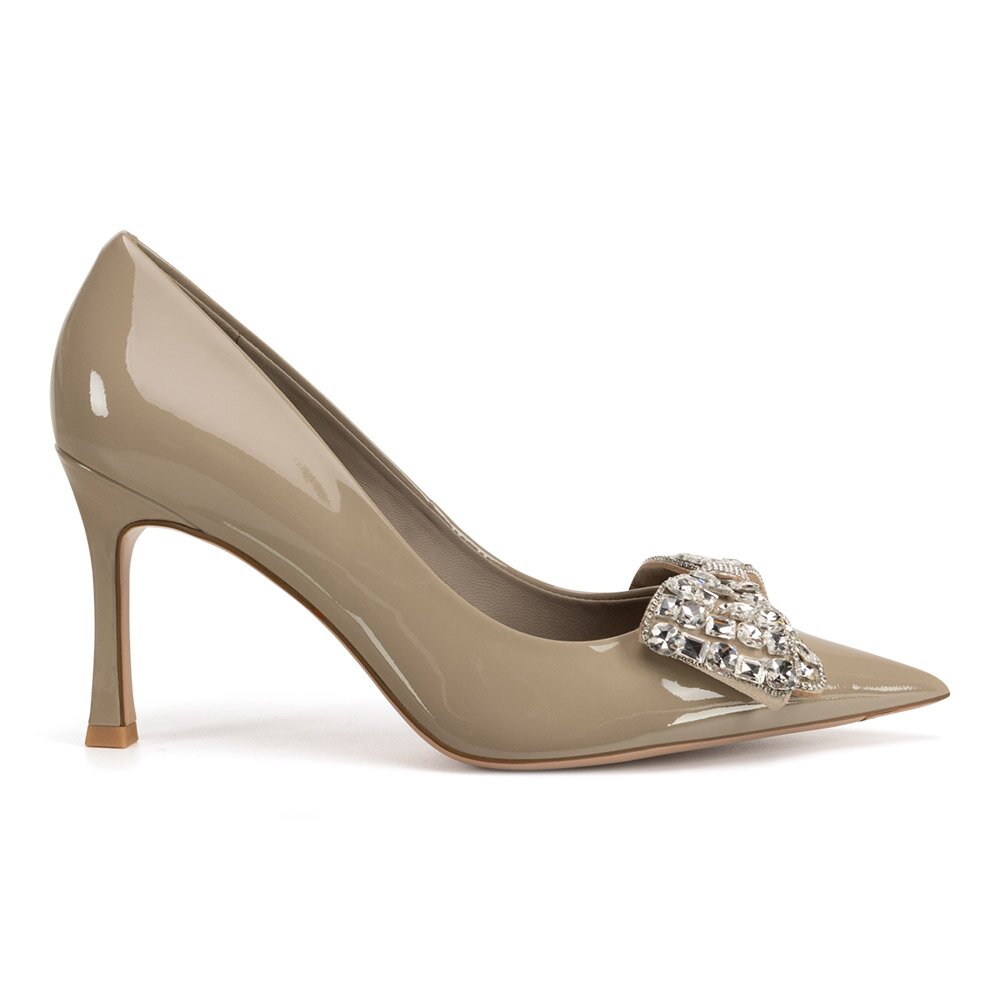 Lodičky BÉŽOVÁ Přírodní kůže (useň) - Lakovaná EVA MINGE SARA-V1278-388-2 Beżowy EVA MINGE Dámské/Obuv/Lodičky