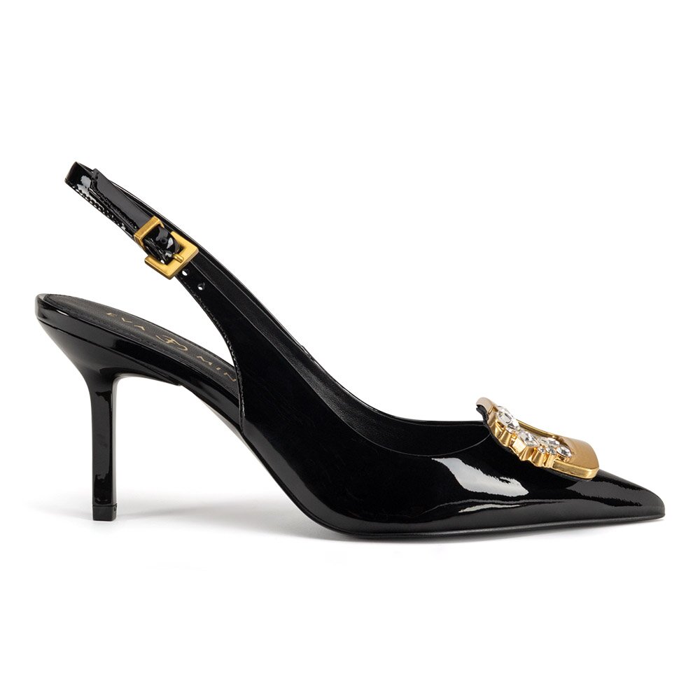 Lodičky ČERNÁ Přírodní kůže (useň) - Lakovaná EVA MINGE SUN-V1560-48 Czarny EVA MINGE Dámské/Obuv/Lodičky