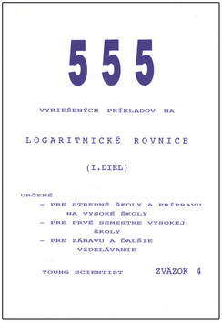<p>Kniha obsahuje 555 vyriešených príkladov. V predslove sa rozoberajú pojmy a vzťahy vedúce k logaritmu a logaritmickej rovnici. V prvom diely je uvedených niekoľko typov logaritmických rovníc tak, aby študent dokázal sám danú problematiku naštudovať. Typ A má tvar loga x = y, kde výpočet robíme pomocou rovnice x = ay. Značné množstvo príkladov umožňuje pochopiť hľadanie neznámeho x pri rôznych známych základoch, ak je dané y. V type B za neznámu volíme základ (logx c = b) a v type C hodnotu logaritmu (loga c = x). Typ D prechádza od tvaru loga (x + h) = b až po tvar loga (p1x + q1) = loga (p2x + q2). Typ F v argumente logaritmu má na ľavej strane kvadratický mnohočlen a na pravej strane začíname od reálneho čísla cez lineárny až po kvadratický mnohočlen. Používaný algoritmus riešenia loga f(x) = loga g(x) z čoho f(x) = g(x) umožňuje prechod od transcendentnej rovnice ku algebraickej, čo vyžaduje (kvôli odmocňovaniu, ...) skúšku, či tak získané korene vyhovujú pôvodnej rovnici. Druhý diel, zväzok 5, pokračuje 250 zložitejšími vyriešenými príkladmi logaritmických rovníc.</p>