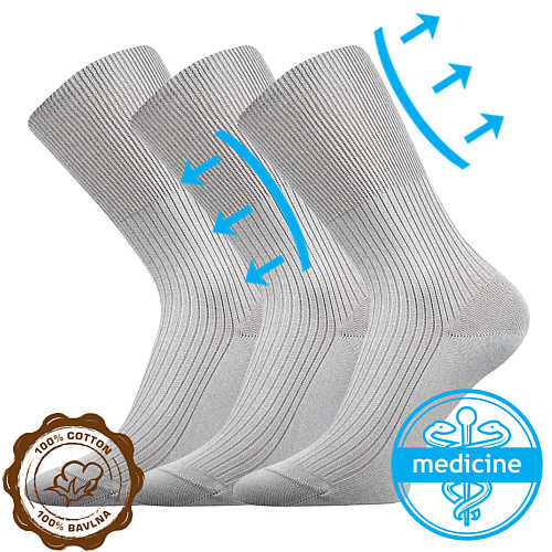 LONKA Ponožky slabé medicine ZDRAVAN 100% bavlněné s nestahujícím lemem SVĚTLE ŠEDÉ (3 páry) 43-45 109588