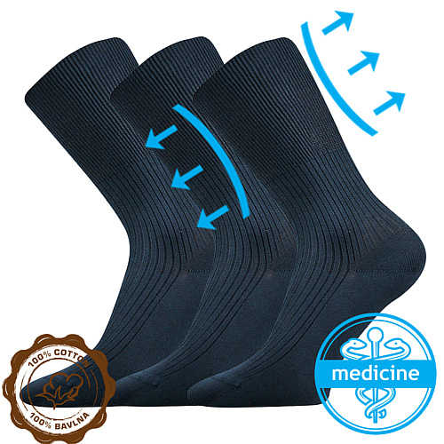 LONKA Ponožky slabé medicine ZDRAVAN 100% bavlněné s nestahujícím lemem TMAVĚ MODRÉ (3 páry) 41-42 109583