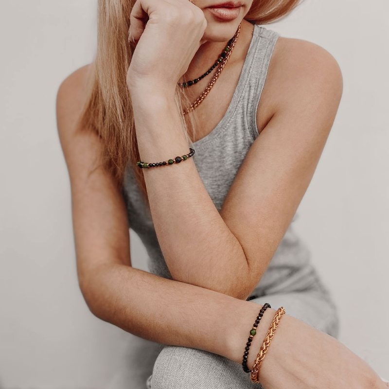 Tento elegantní set kombinuje sílu černého turmalínu s luxusem smaragdu a chirurgické oceli. Minimalistický, ale zároveň výrazný design podtrhuje sofistikovanost a přirozenou eleganci. Dokonalá volba pro ty, kdo chtějí šperky s hlubokým významem a nadčasovým stylem.Černý turmalín je známý svými ochrannými vlastnostmi, zatímco smaragd symbolizuje moudrost a prosperitu. Společně tvoří harmonickou kombinaci, která zaujme svou exkluzivitou a jedinečným vzhledem. Zlaté detaily dodávají setu punc luxusu a vytvářejí rafinovaný kontrast.Tento look se skvěle hodí jak k formálním, tak i ležérním outfitům. Díky svým přírodním kamenům přináší nejen estetickou hodnotu, ale i hlubší symboliku spojenou s ochranou a sebevědomím. Detailní parametry jednotlivých šperků naleznete po rozkliknutí konkrétního šperku na jeho produktové stránce. Zde se dozvíte přesné rozměry, materiálové složení a další specifikace, které vám pomohou s výběrem toho správného doplňku. 💡Tip: Každý šperk ze sady lze zakoupit jednotlivě nebo jako kompletní set, který vám umožní vytvořit harmonický a sladěný look. Perfektní volba pro ženy, které chtějí zvýraznit svůj jedinečný styl s dotekem elegance a přírodní krásy.
