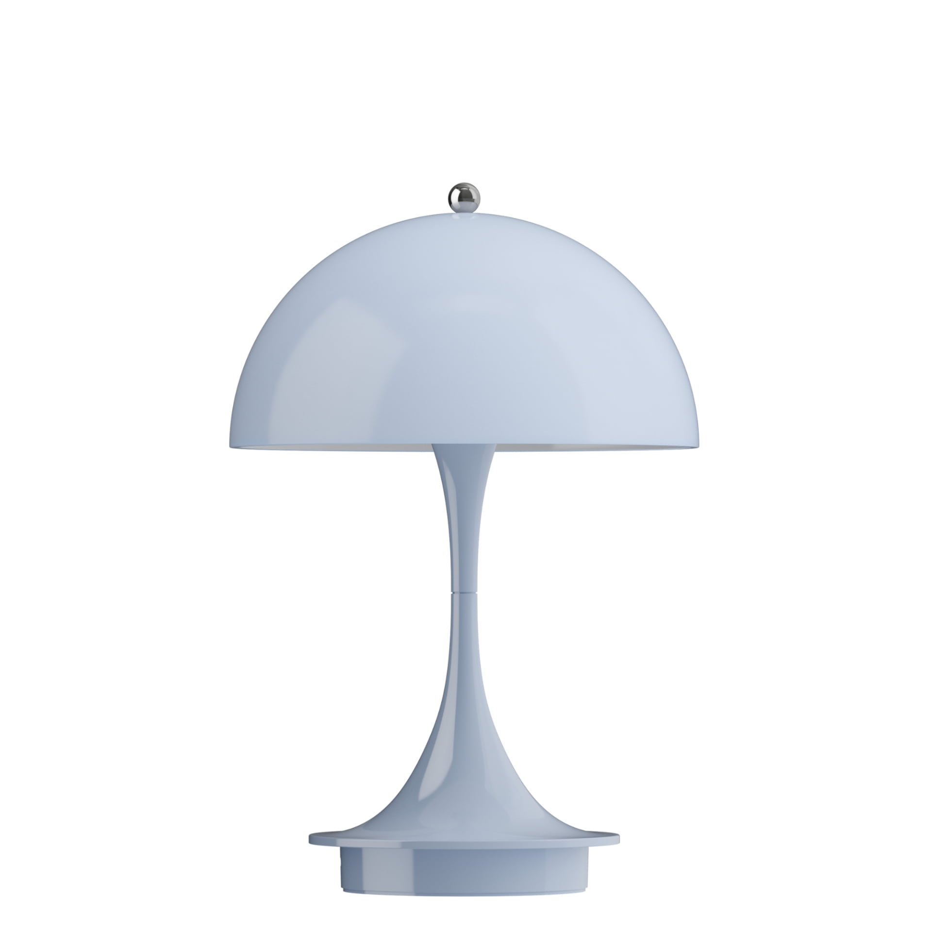 Hemisférické stínidlo z polymeru poskytuje díky své částečné průhlednosti měkké světlo vyzařující do všech směrů a tím vytváří příjemnou a intimní atmosféru. Verze Panthella 160 Portable v bledě modrém provedení je kompaktní a přenosnou variantou tohoto ikonického designu. průměr stínidla 16 cm / průměr stojanu 10,6 cm / výška 24,1 cm Stínidlo je vyrobené z polymeru, stojan je z recyklovaného polymeru.