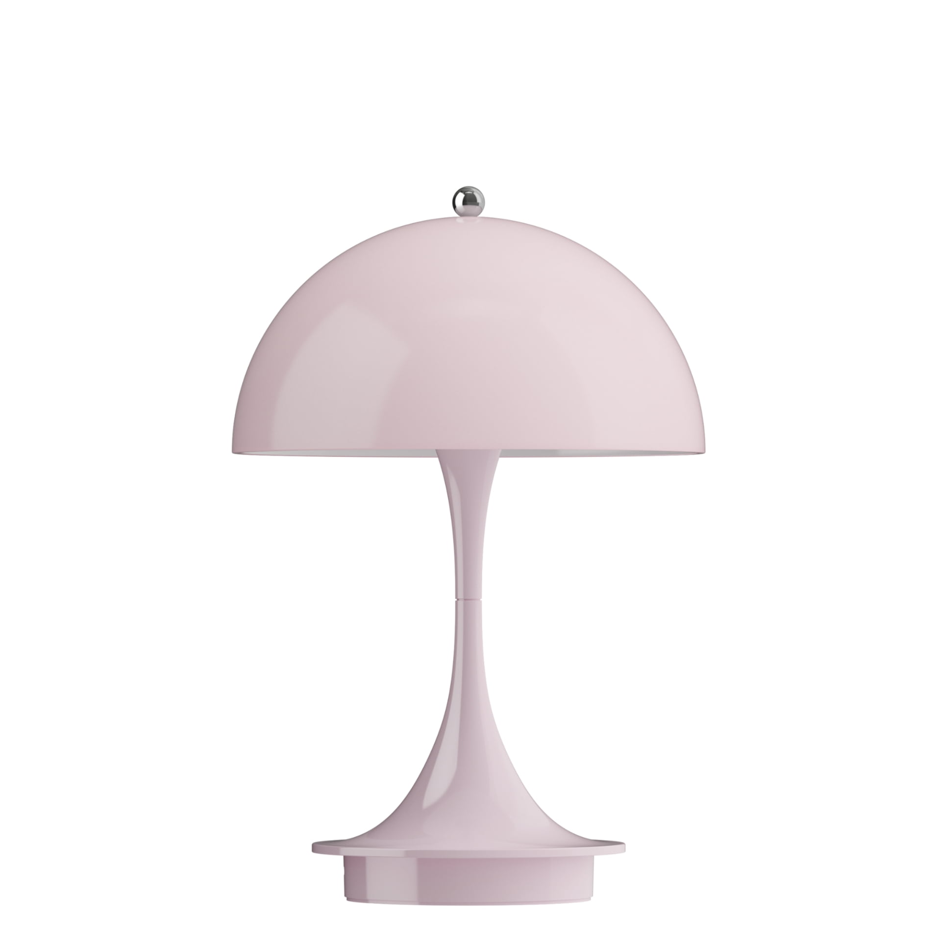 Hemisférické stínidlo z polymeru poskytuje díky své částečné průhlednosti měkké světlo vyzařující do všech směrů a tím vytváří příjemnou a intimní atmosféru. Verze Panthella 160 Portable v opálově růžovém provedení je kompaktní a přenosnou variantou tohoto ikonického designu. průměr stínidla 16 cm / průměr stojanu 10,6 cm / výška 24,1 cm Stínidlo je vyrobené z polymeru, stojan je z recyklovaného polymeru.