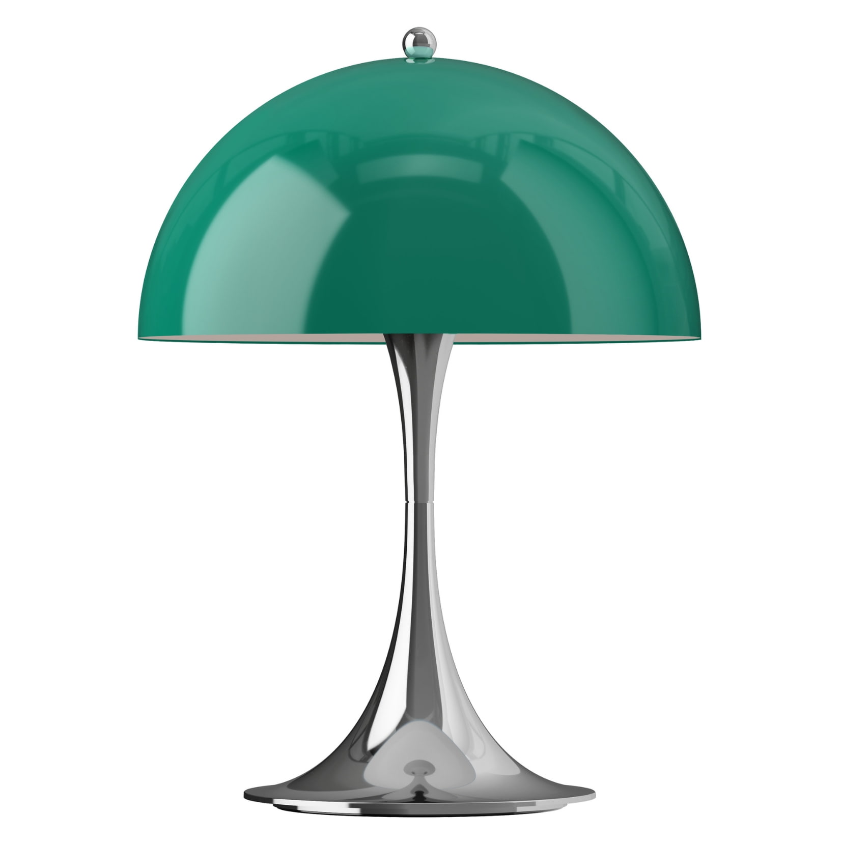 Hemisférické stínidlo z polymeru poskytuje díky své částečné průhlednosti měkké světlo vyzařující do všech směrů a tím vytváří příjemnou a intimní atmosféru. Verze Panthella 250 Portable v opálově zeleném provedení a chromováním je flexibilním a nadčasovým osvětlením. průměr stínidla 25 cm / průměr stojanu 15,6 cm / výška 34,6 cm Stínidlo je vyrobené z polymeru, stojan je z recyklovaného polymeru.