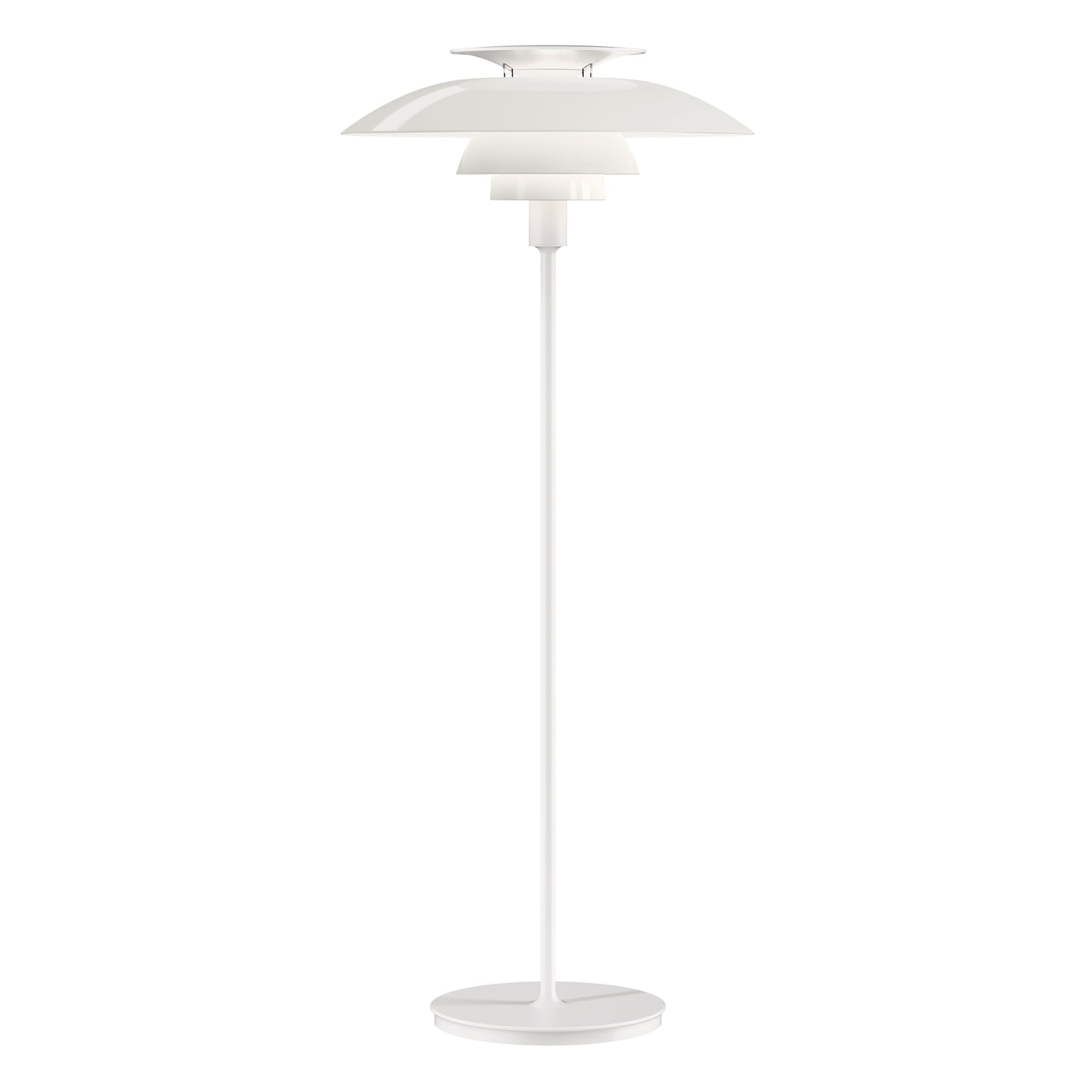 Model PH 80 má bílý ocelový stojan a bílá akrylová stínidla, která primárně směřují světlo dolů, ale současně je i jemně propouštějí do okolí. Pokud tedy hledáte lampu, která bude nejen jedinečným kouskem ve vašem interiéru, ale také bude vytvářet příjemné měkké osvětlení, PH 80 je tou pravou volbou. průměr stínidla 55 cm / průměr stojanu 32 cm / výška 131,5 cm / délka kabelu 2,6 m Stínidla jsou vyrobená z akrylu a polykarbonátu.